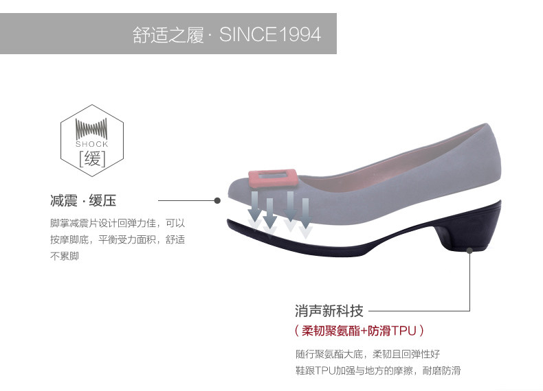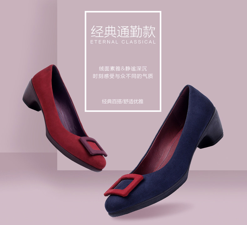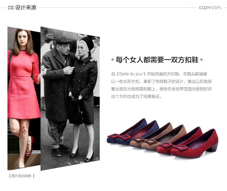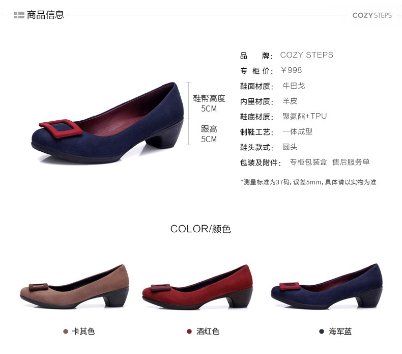 COZY STEPS羊反绒尖头丁字扣包头凉鞋女中跟粗跟浅口单鞋女6B037