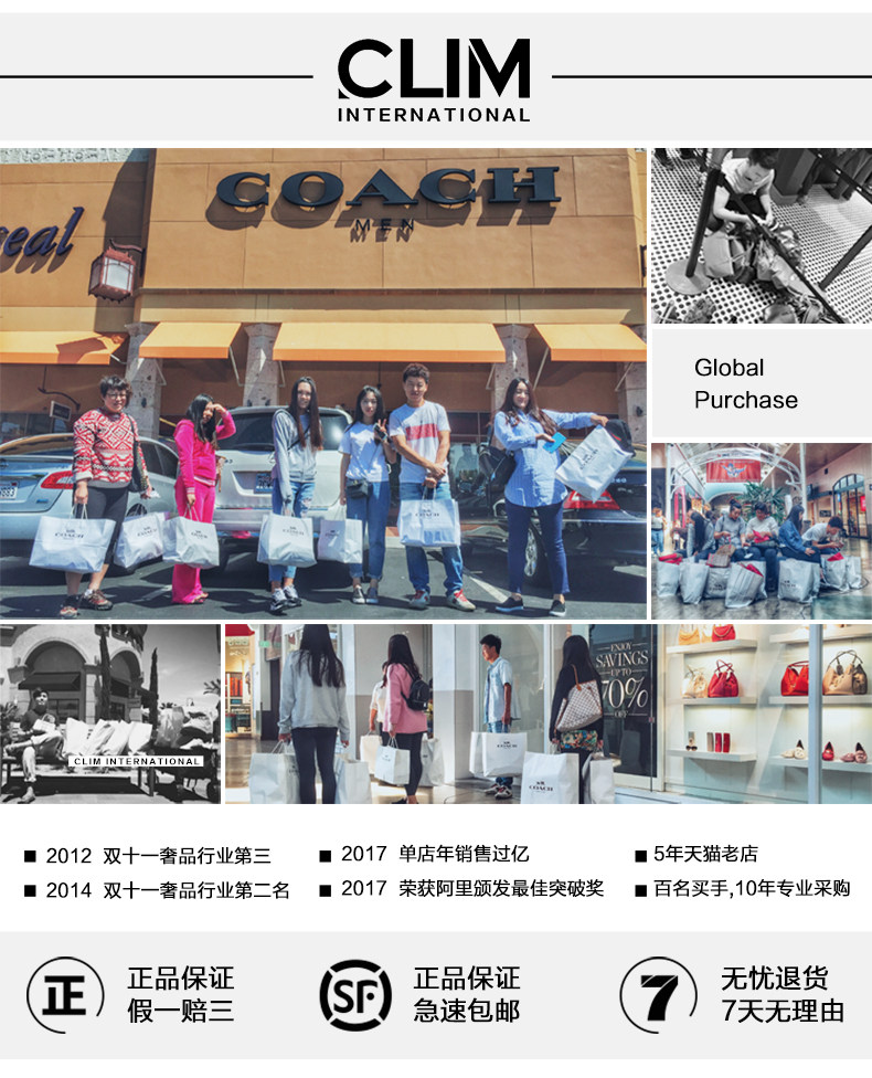 美国COACH公司,蔻驰贸易(上海)有限公司,始于1941年,皮革制品轻奢侈品品牌,坚持纯手工工艺打造经典时尚,纽约现代奢华风尚手袋、服饰、鞋履等产品供应商 COACH蔻驰,1941年诞生。总部位于纽约。COACH是美国高端生活方式时尚品牌,为男士、女士提供精致配饰与礼品,产品系列包括女士手袋、男士包款、男士及女士小皮具、鞋履、服饰、手表、旅行用品、围巾、太阳眼镜、香水、时尚首饰等。 COACH成立之初,是由六位来自皮革世家的皮匠师傅共同经营,是美国历史最悠久和最成功的皮革制品公司之一。据说,COACH(蔻驰) 创始人Miles Cahn最初是从一双传统的棒球手套中获得的制作灵感。他发现棒球手套越用越光滑,于是他借鉴其技术,并经过细致处理,将坚固耐用的棒球手套皮革变得柔软耐用。这种皮件呈现着迷人的天然纹路,而且不需要繁复的保养技巧,也能保持最初的样貌。 随着业务的不断发展,COACH(蔻驰) 仍一直保持着上乘的用料和工艺的高质量水准,这一贯穿始终的品牌宗旨,是COACH(蔻驰) 成功的基石。而COACH(蔻驰) 所特有的美式设计、精湛的皮革制造技术以及周到细致的服务,也成为受顾客欢迎的品牌特色。 20世纪90年代,COACH公司遇到了发展“瓶颈”。 1995年路·法兰克弗就任公司董事长兼CEO,通过提高产品的“情绪化需求”,不再让品质和功能性成为COACH产品的唯一竞争力,重新恢复COACH品牌活力。 1962年 Bonnie 由纸袋产生构想,推出第一个购物包;1962年 推出第一个由棒球手套发想成的鞣制皮革皮件;1973年 第一个Duffle Sac 诞生;1985年 Sara Lee 公司收购COACH ;1998年 COACH拓展国际市场;推出第一个混合材质的包包,并授权生产COACH男女手表;1999年 COACH网站诞生;推出男女鞋、家具等系列 ;2001年 设立COACH日本分公司;授权Steelcase生产家具;Reed Krakoff 获得CFDA年度配件设计大奖;推出C Logo (Signature)、饰品、旅行等系列 ;2003年 推出小C Logo(Mini Signature)系列;2006年台湾中山旗舰店开幕;COACH欢庆65周年庆推出根植于历史中的Legacy系列。