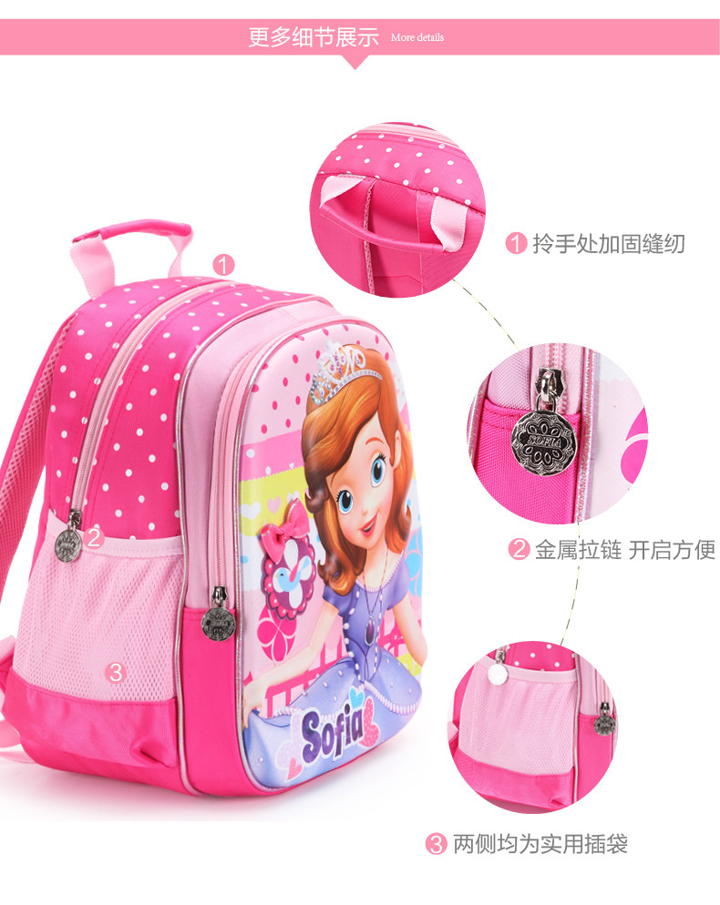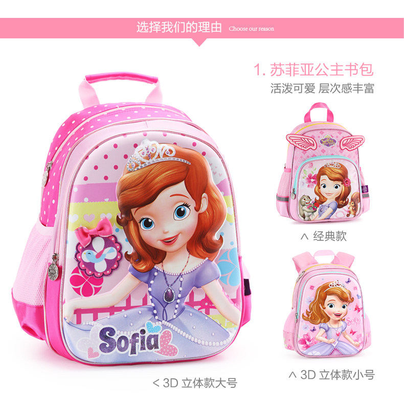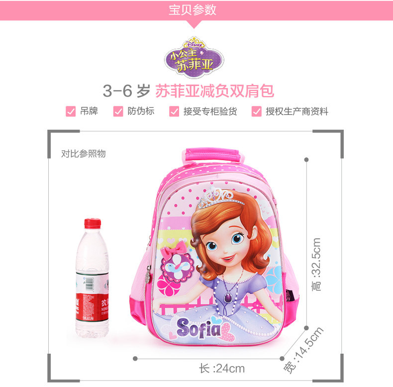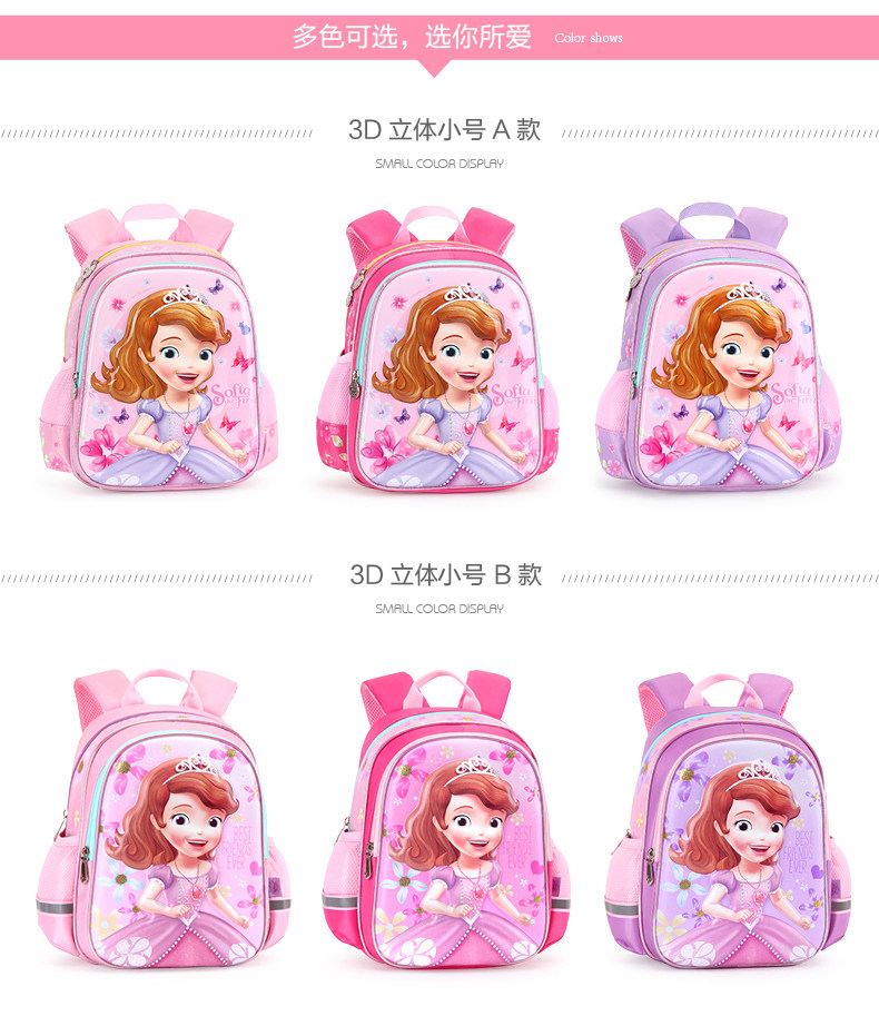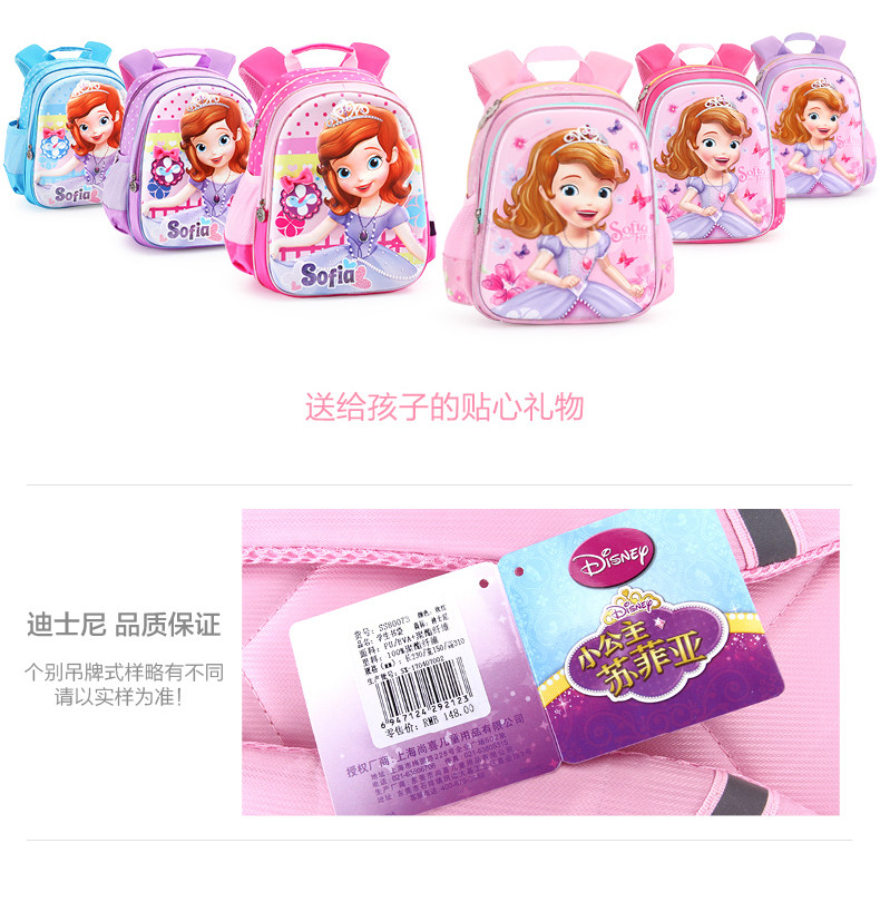 以下是幼儿园儿童书包2-6女童迪士尼小公主苏菲亚卡通小孩宝宝双肩背包的详细说明,厂家介绍,求购联系信息,最终解释权归广东联众文具有限公司所有
