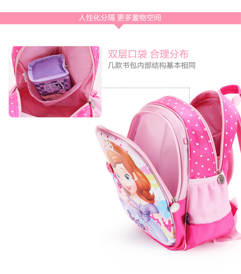 幼儿园儿童书包2-6女童迪士尼小公主苏菲亚卡通小孩宝宝双肩背包