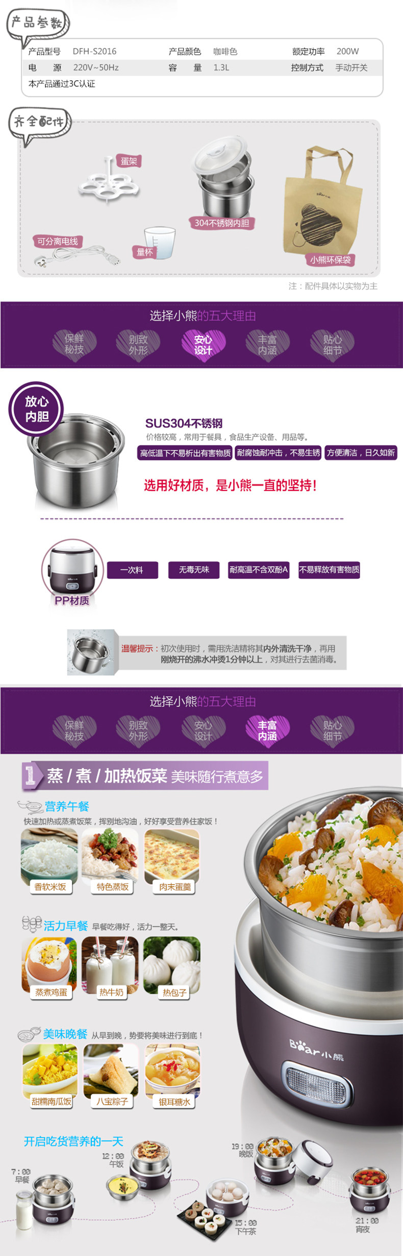 Bear/小熊 JDQ-C3011 煎蛋器 电煎蛋锅 防粘自动调温 实用方便