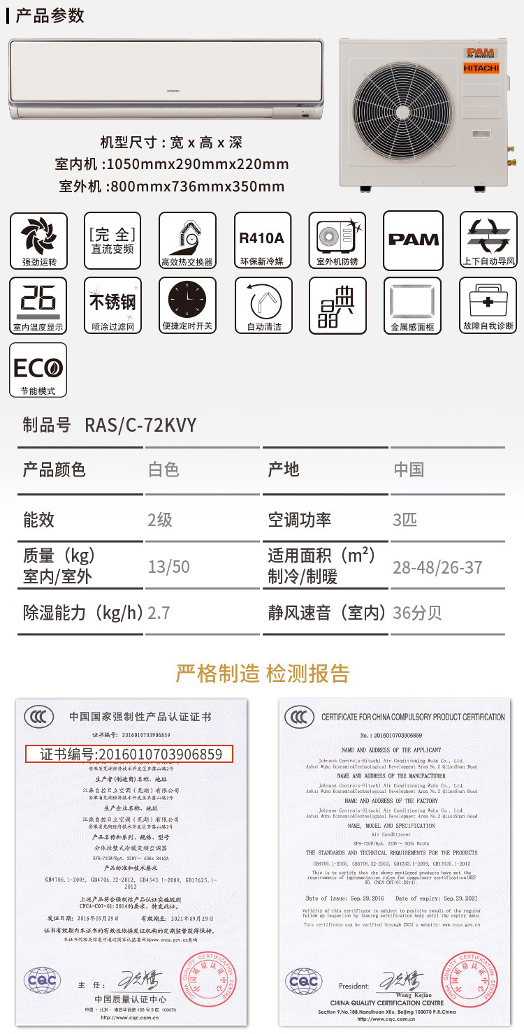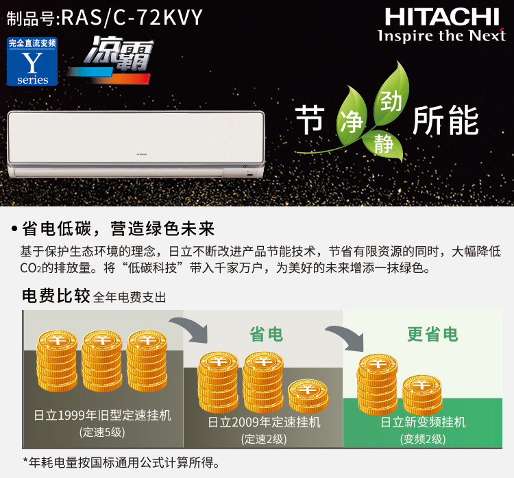Hitachi/日立KFR-72GW/BpA冷暖变频3匹P挂壁空调挂机RAS/C-72KVY