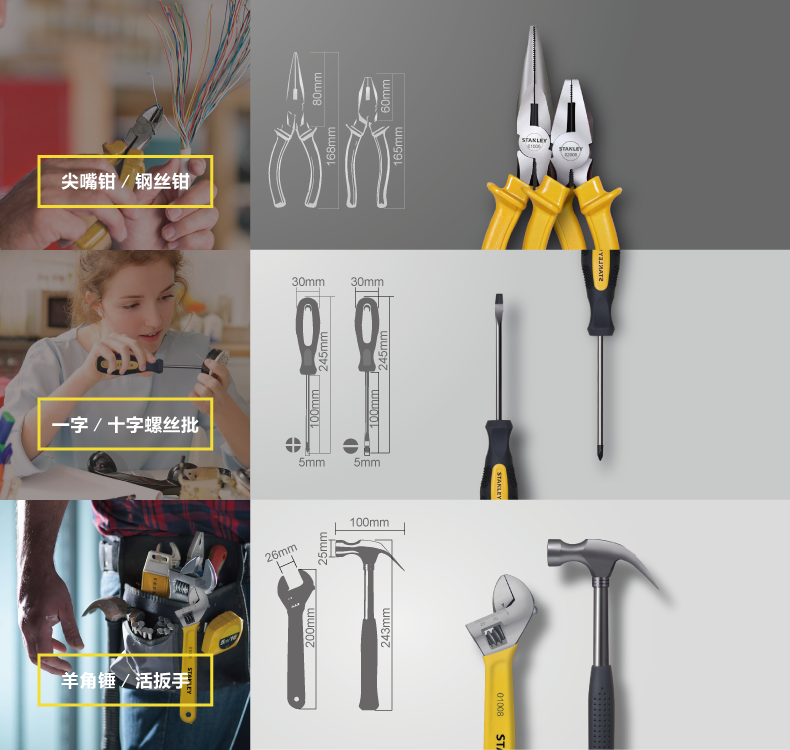 史丹利 家用五金工具 钢柄羊角锤 榔头 起钉锤子 铁锤多功能