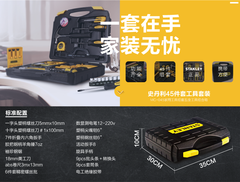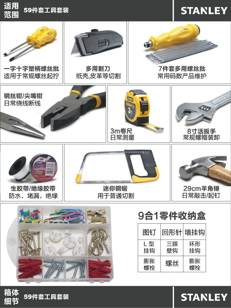 STANLEY/史丹利塑料工具箱16寸19寸家用五金工具箱进口手提零件盒