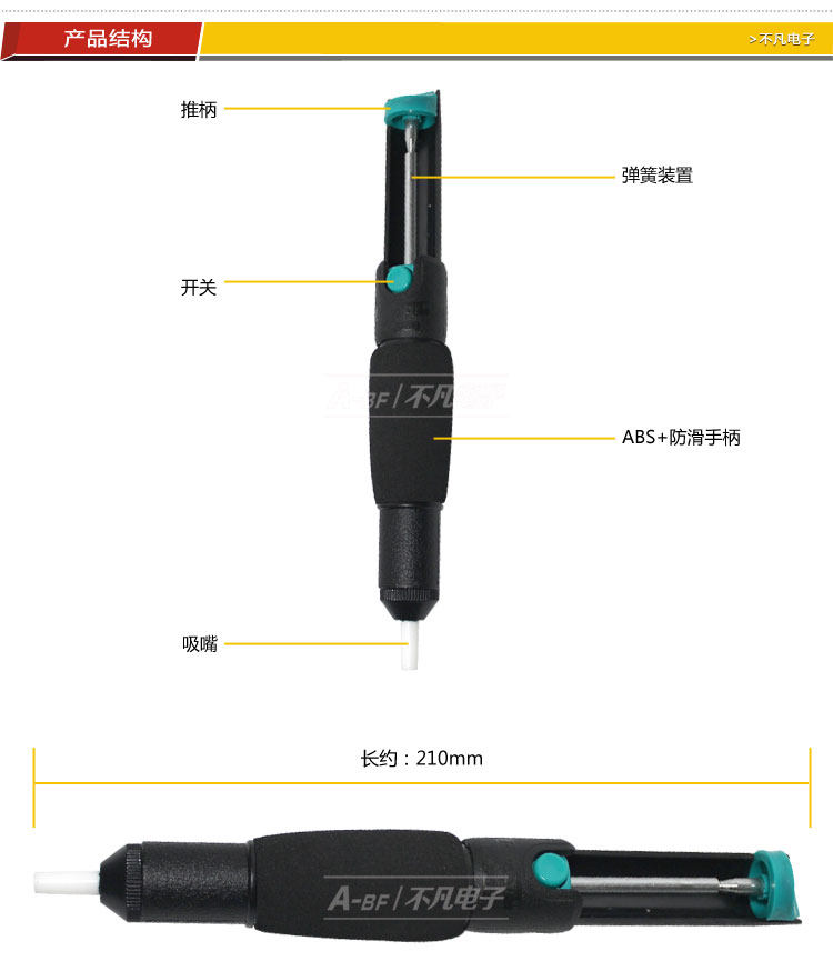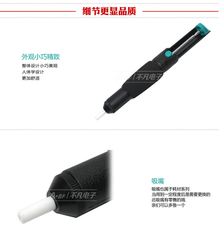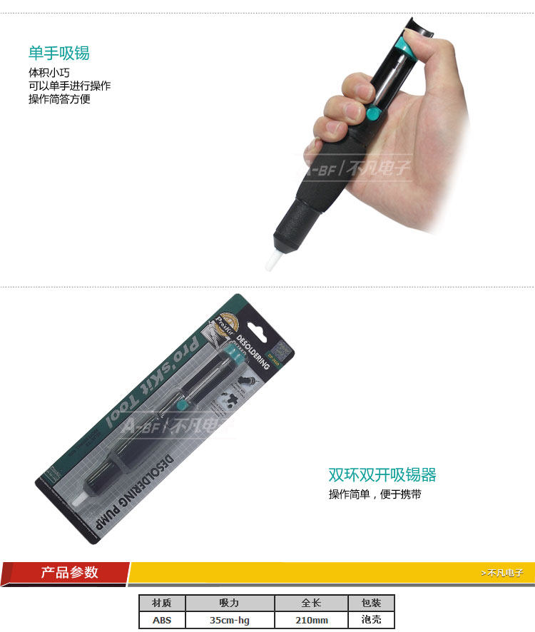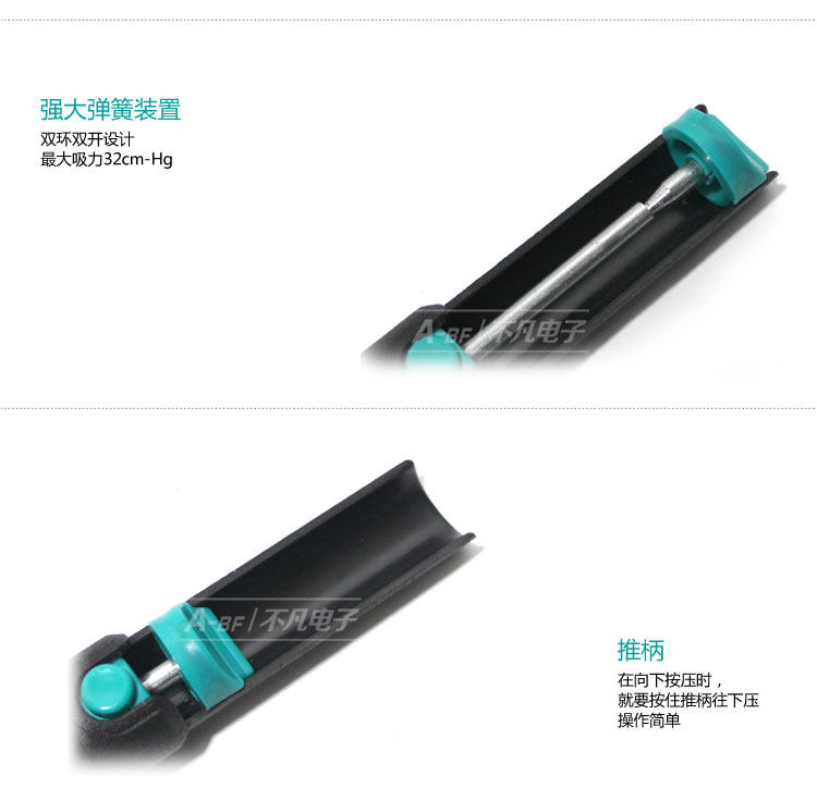 双油封设计,双层气漏保护,气密度更佳,不易漏气内部弹簧采用后拉式设计,瞬间吸力持强,吸力达32Hg-cm.软性防滑手柄设计,操作顺畅不滑手,握感更舒适.替换式吸头,经济实惠,操作方便,清洁容易