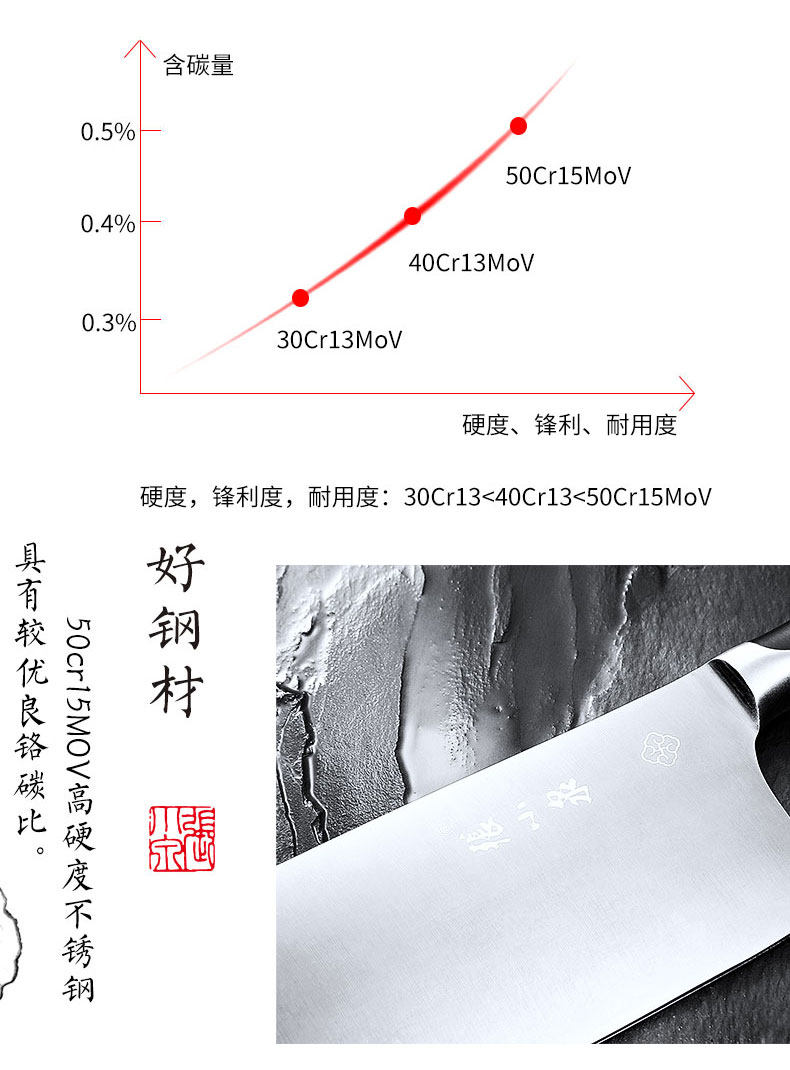 张小泉锐志不锈钢切片刀湿式开刃钼钒钢锋利厨师切菜切肉菜刀