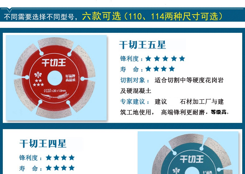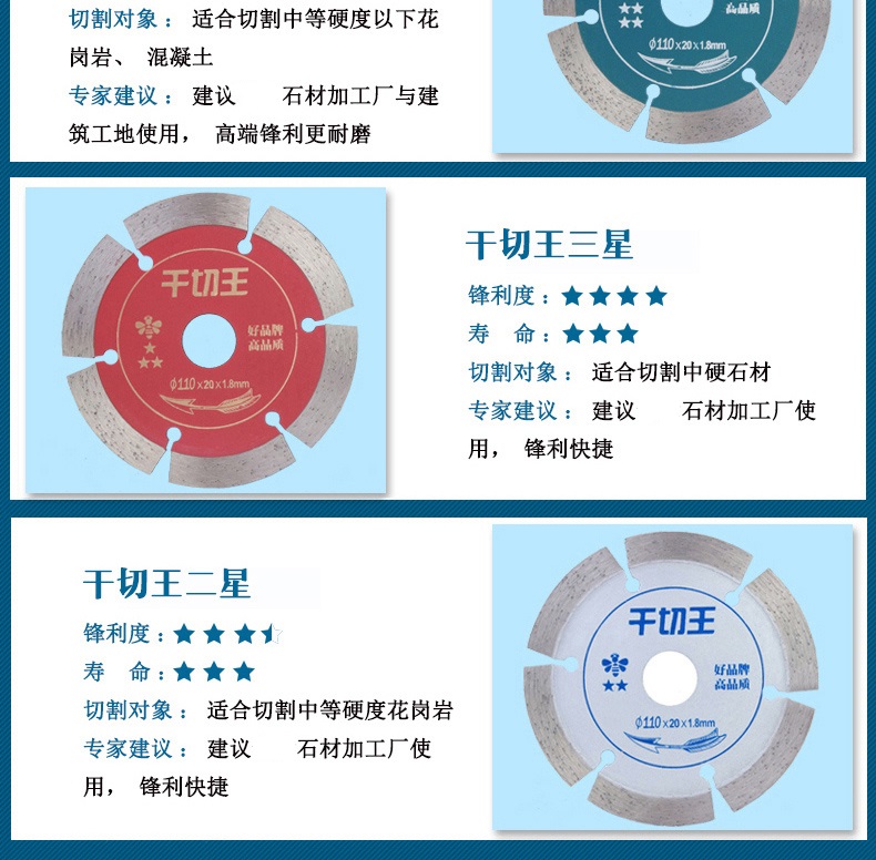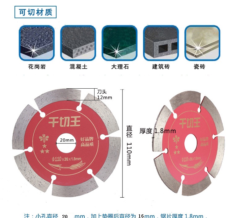 小蜜蜂工具干切王金刚石圆锯片大理石花岗岩石材切割片云石片