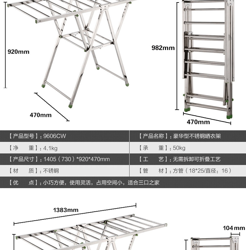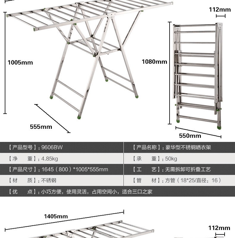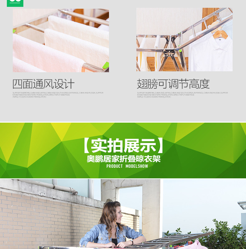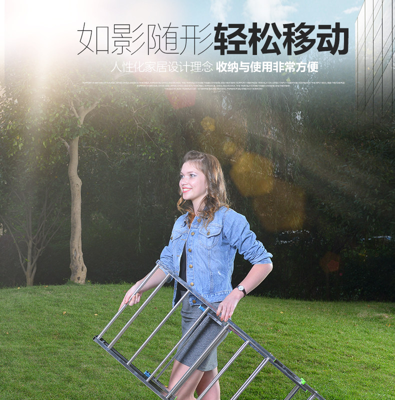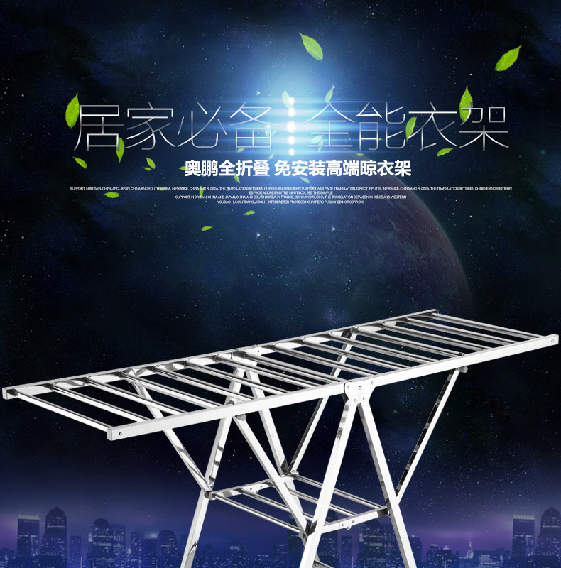 奥鹏不锈钢晾衣架落地单杆式简易卧室内置地挂晒衣服被架阳台加厚