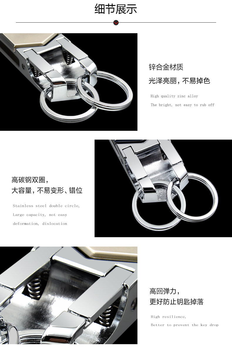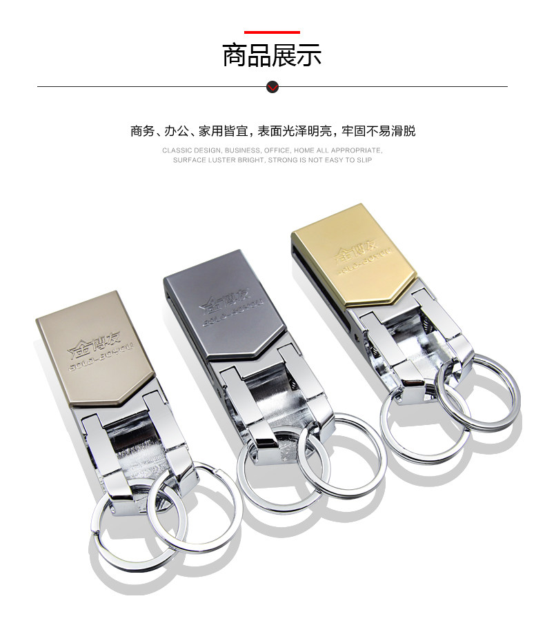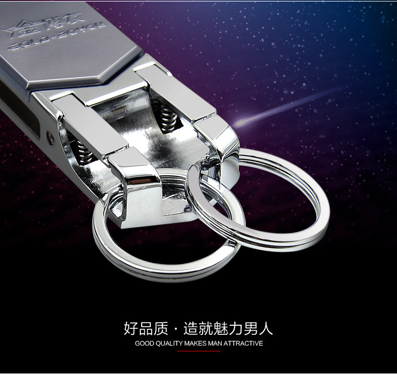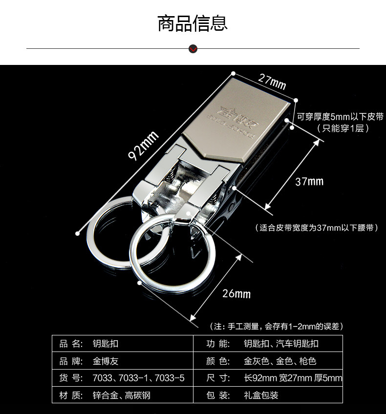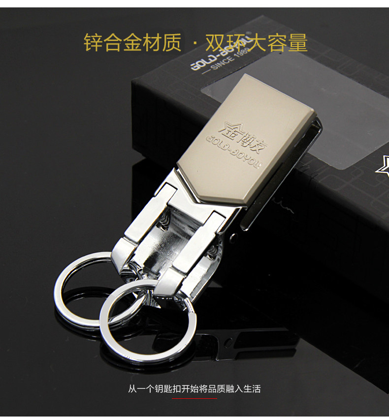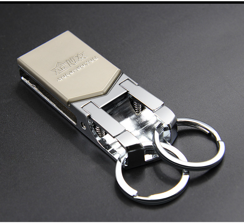 博友穿皮带钥匙扣男士汽车腰挂件创意简约多功能不锈钢双环钥匙圈