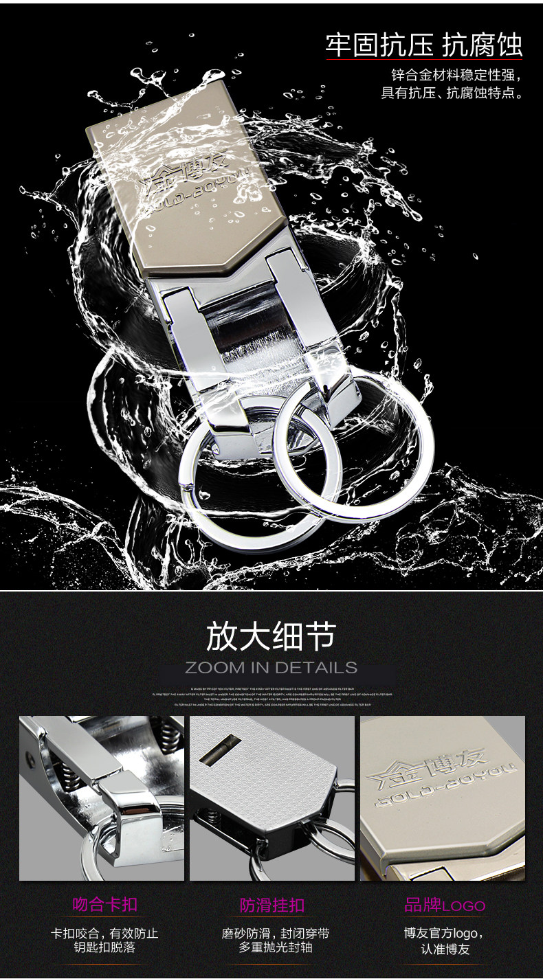 博友汽车钥匙扣男士腰挂个性创意简约皮带锁匙圈环不锈钢挂件礼品