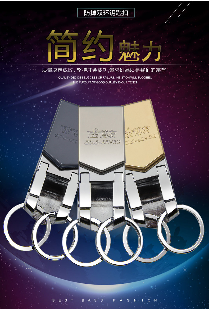 博友男女汽车钥匙扣情侣挂件腰挂件钥匙链金属不锈钢圈环创意简约