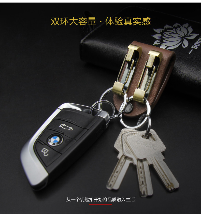 博友穿皮带钥匙扣男士汽车腰挂件创意简约多功能不锈钢双环钥匙圈