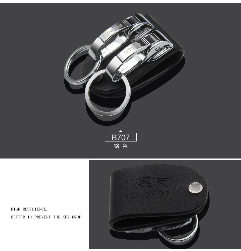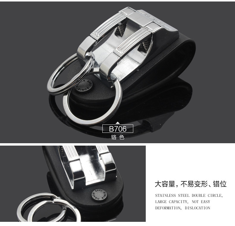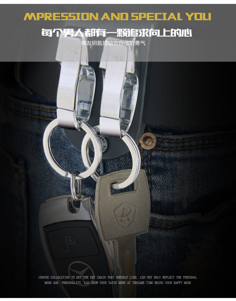 博友汽车钥匙扣男士腰挂个性创意简约皮带锁匙圈环不锈钢挂件礼品