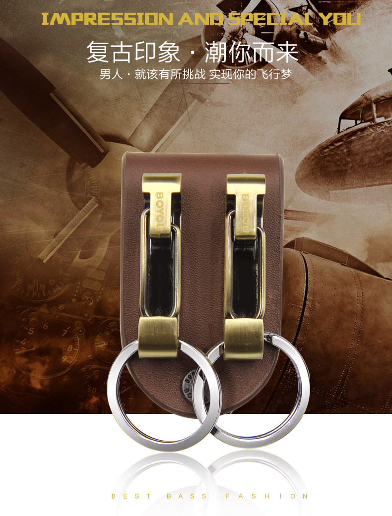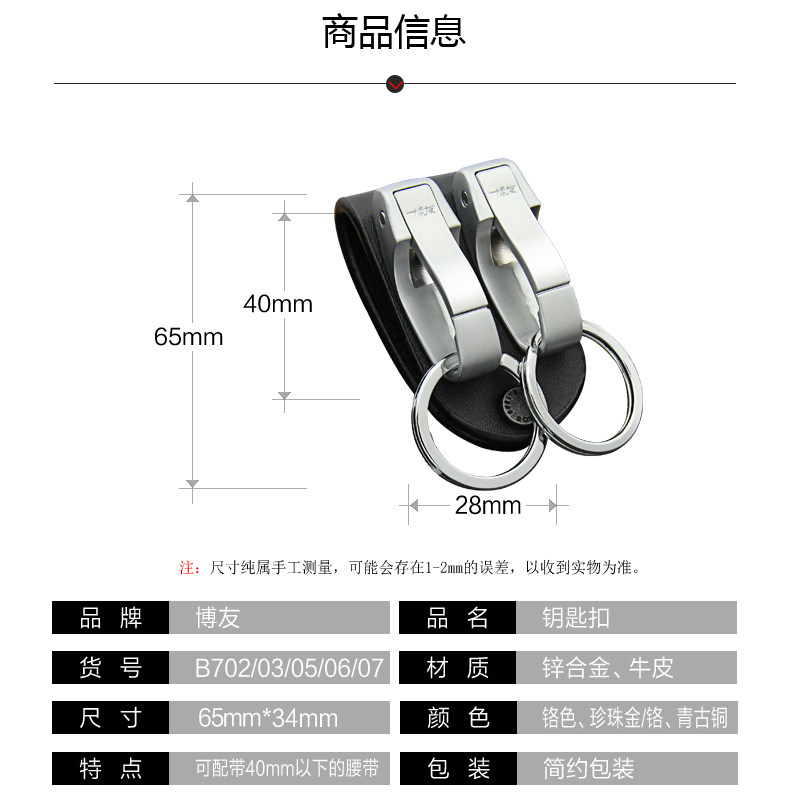 博友穿皮带金属钥匙扣男士牛皮腰挂式创意汽车锁匙扣圈不锈钢挂件