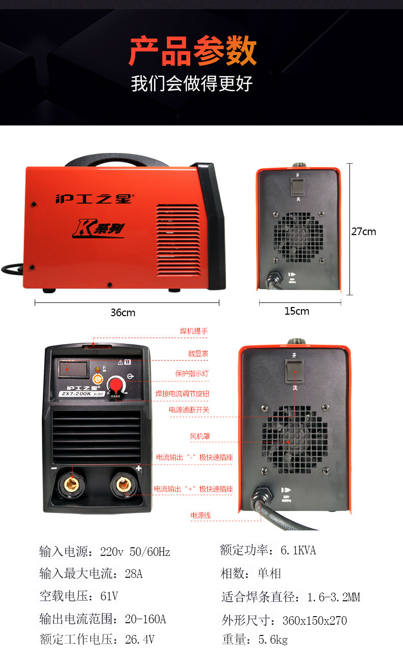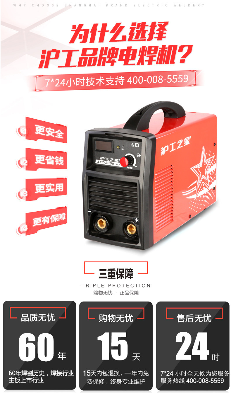 上海沪工之星ZX7-200K直流电焊机220V家用小型全铜手提便携式焊机