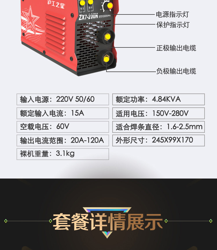 上海沪工之星ZX7-200K直流电焊机220V家用小型全铜手提便携式焊机