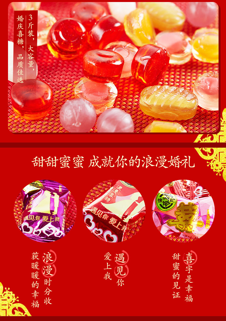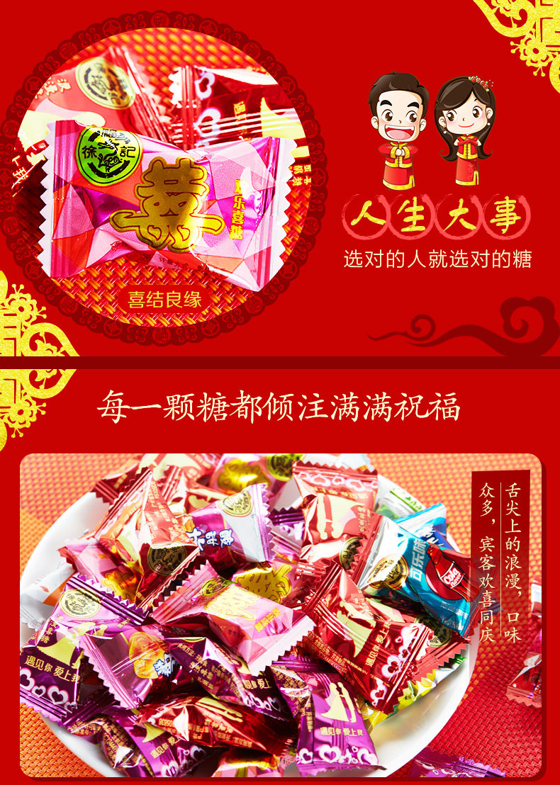 徐福记喜庆糖2000g结婚喜糖软糖果棉花糖混合散装零食大礼包批发
