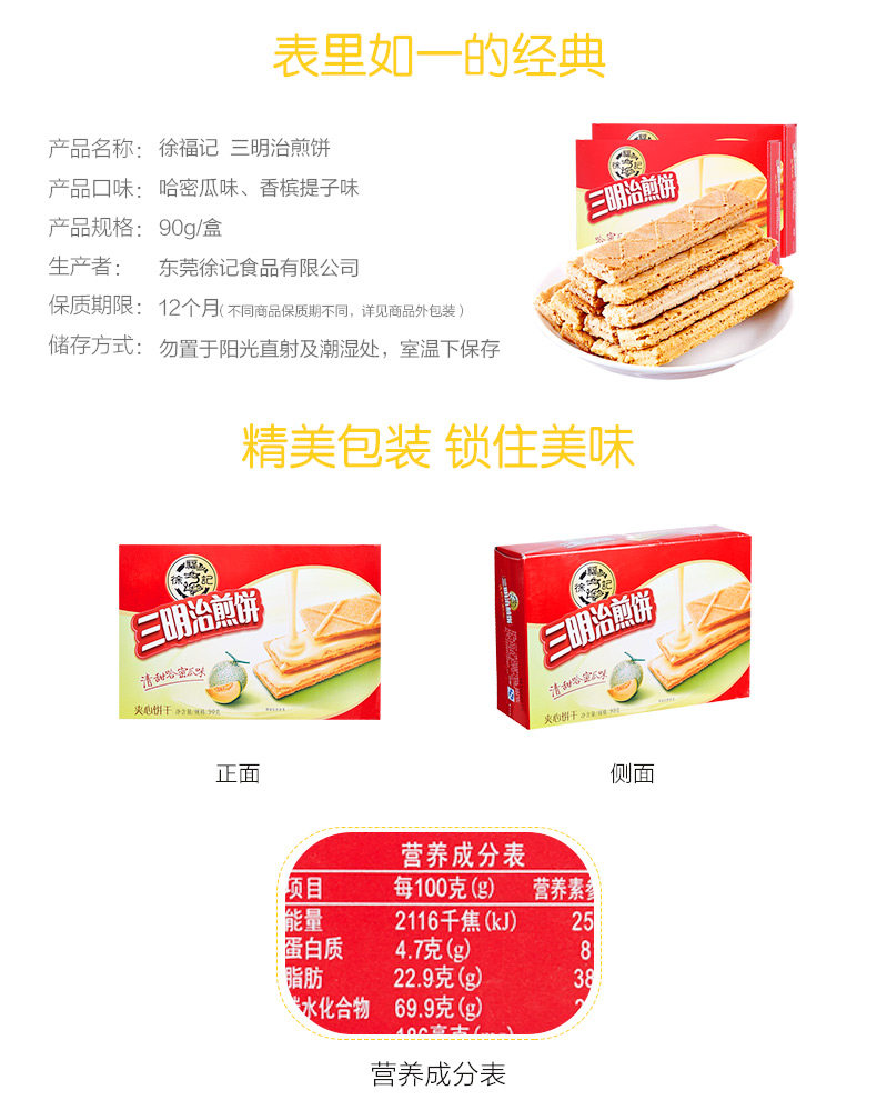 徐福记-三明治煎饼90g 夹心饼干零食威化饼干糕点办公室休闲零食