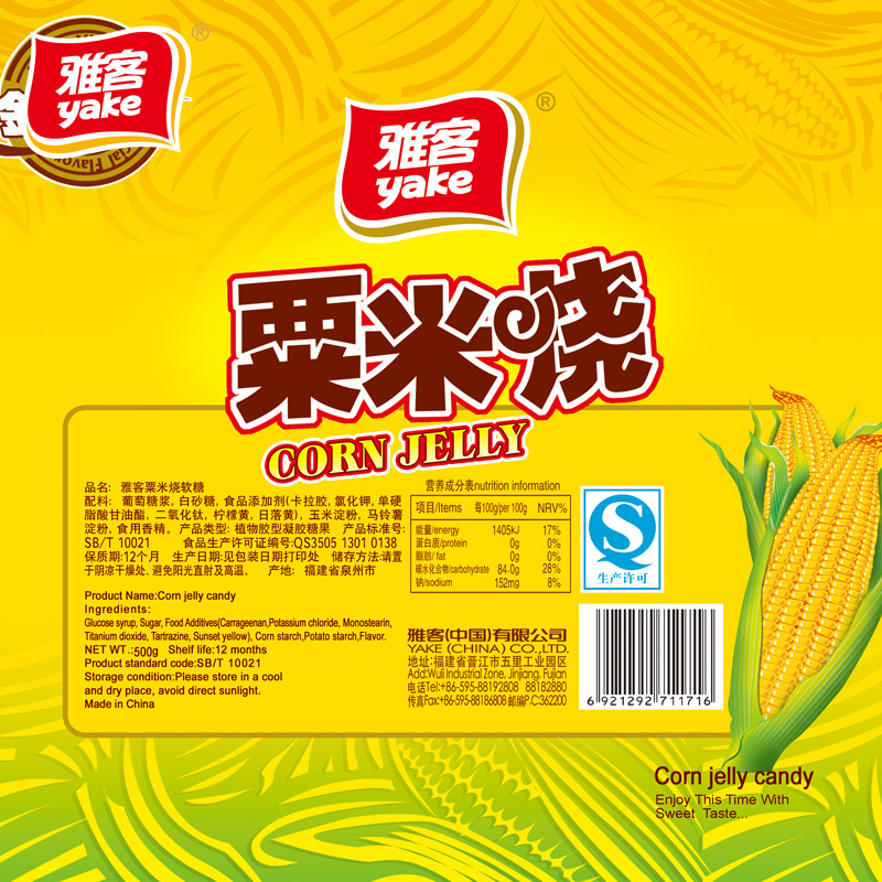 雅客玉米软糖休闲零食糖果婚庆喜糖玉米糖水果糖儿童节礼物500g*2