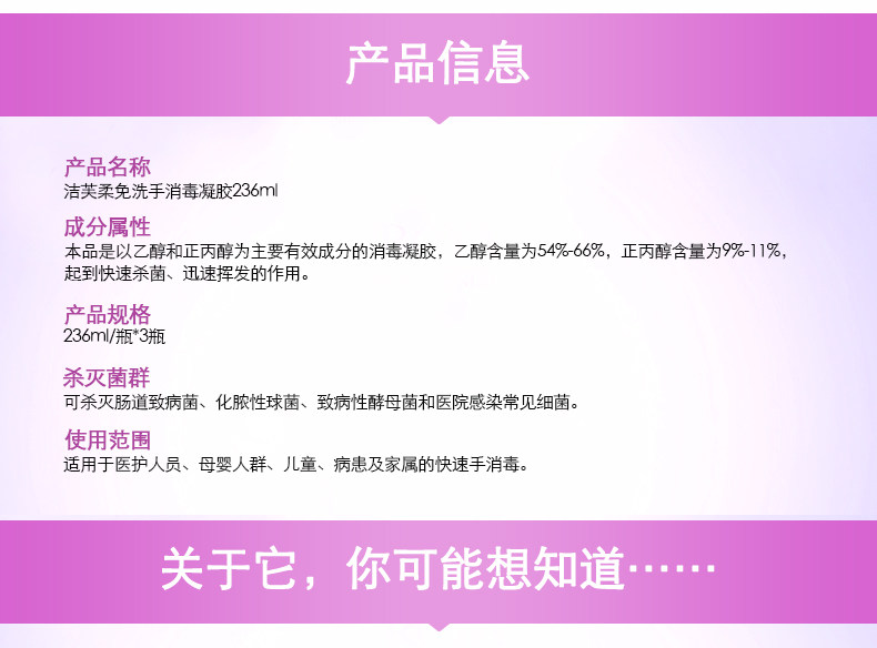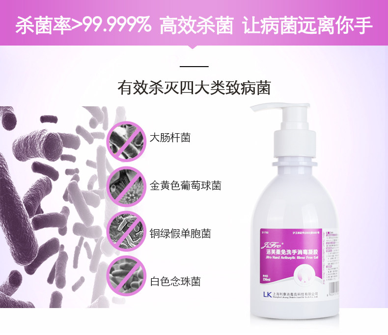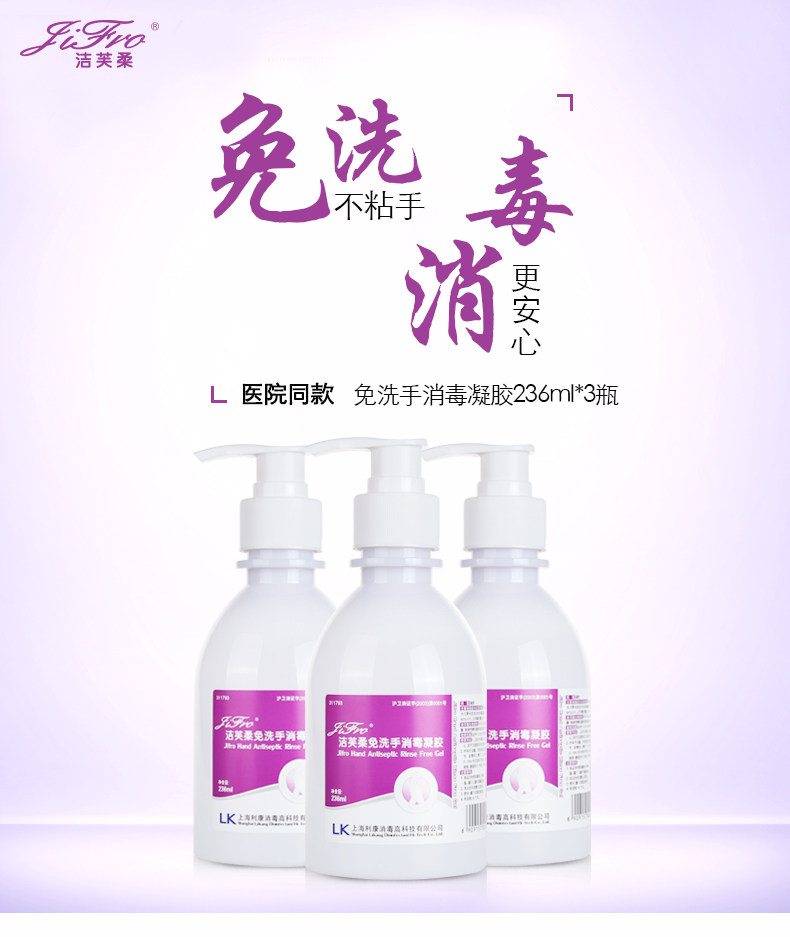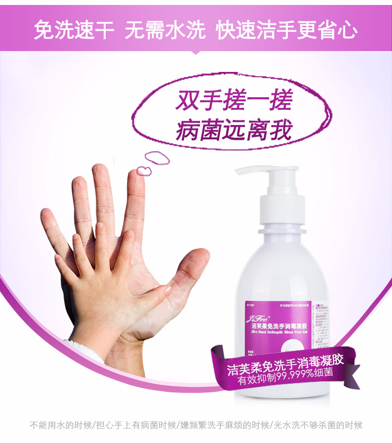 洁芙柔免洗手消毒凝胶杀菌抑菌消毒液500ml酒精消毒免水洗洗手液