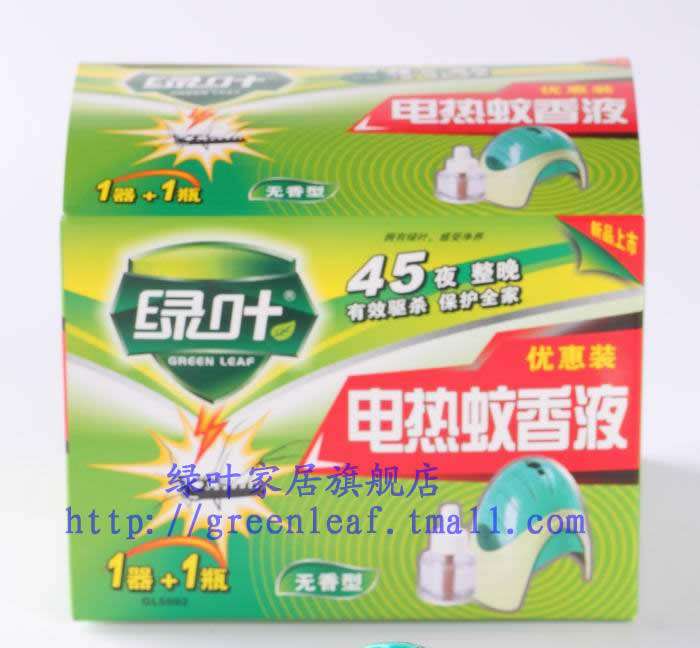 绿叶电热蚊香片套装驱蚊72片灭蚊片水液体蚊香无香送加热器