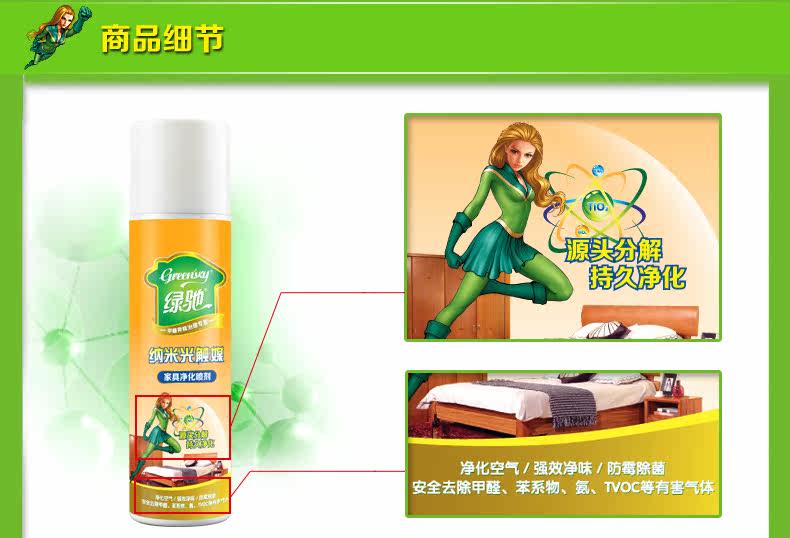 绿驰纳米光触媒除甲醛喷雾剂新房新家具除味甲醛清除剂儿童房专用