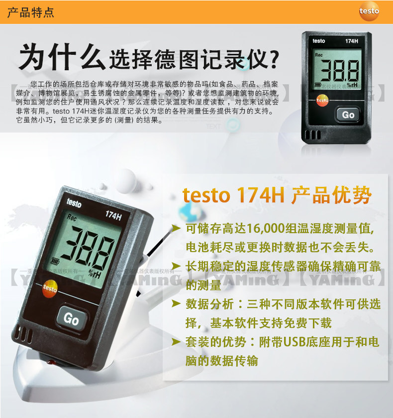 德国德图testo 174H温湿度记录仪食品药品冷库运输温湿度计高精度