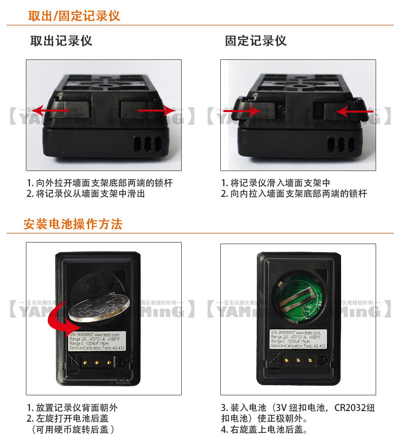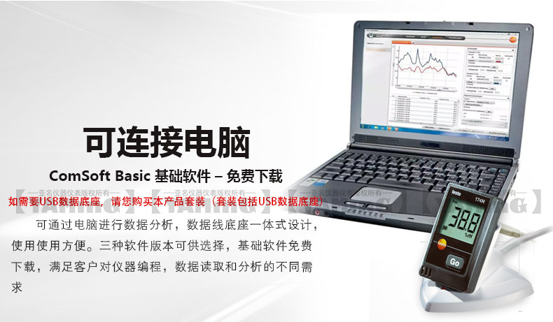 德图testo 174T迷你型温度记录仪食品药品冷藏温度计防潮湿带底座