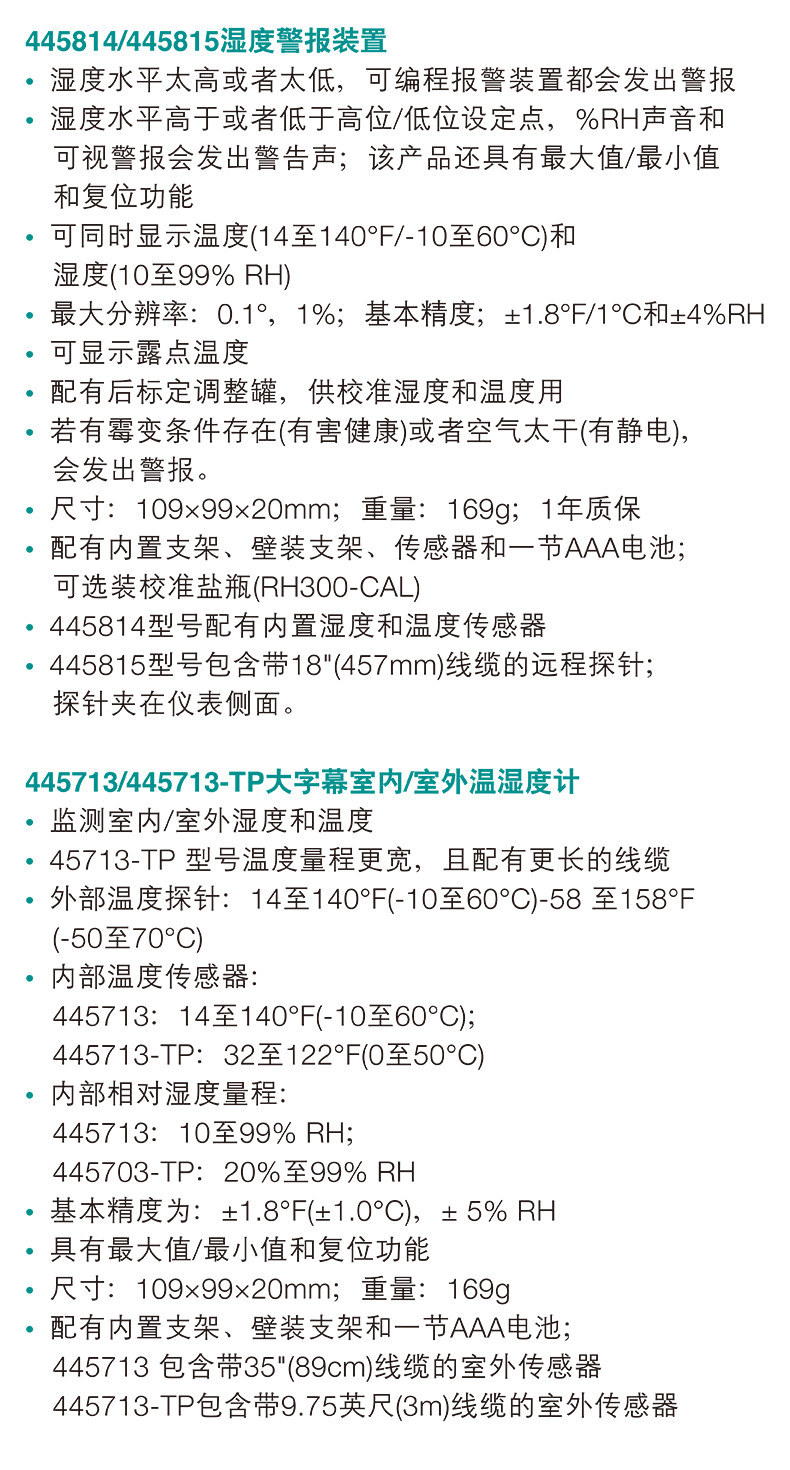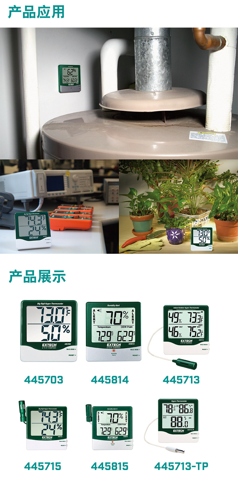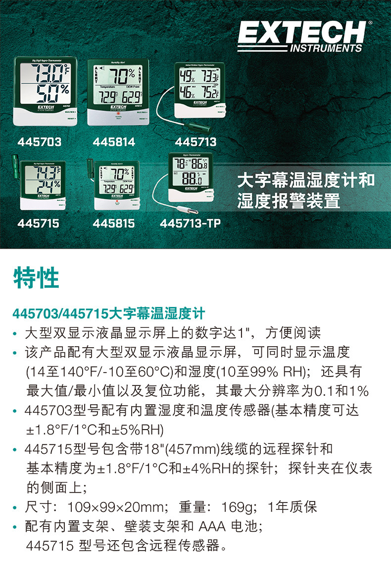 EXTECH艾示科445703/445814/445815/445715/445713温湿度显示仪