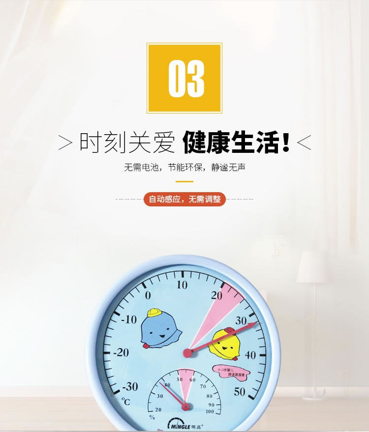 明高TH101B精典家用双金属温度计室内湿度计无需电池带支架