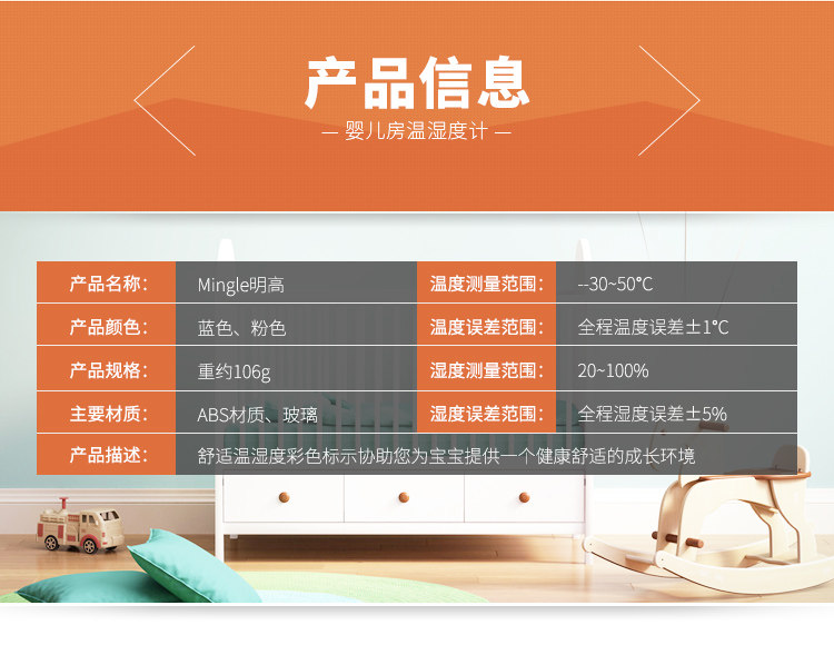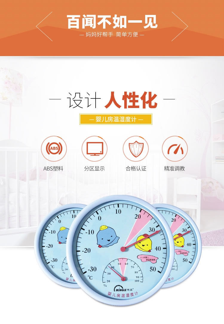 明高 TH101A创意家用 婴儿房温度计湿度计测度计带支架可挂墙