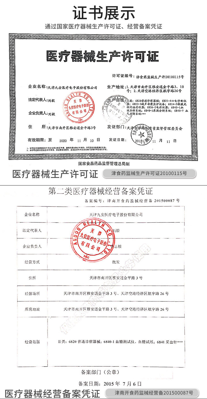 以下是九安血糖仪AG605家用智能电子测血糖配血糖试纸的详细说明,厂家介绍,求购联系信息,最终解释权归天津九安医疗电子股份有限公司所有