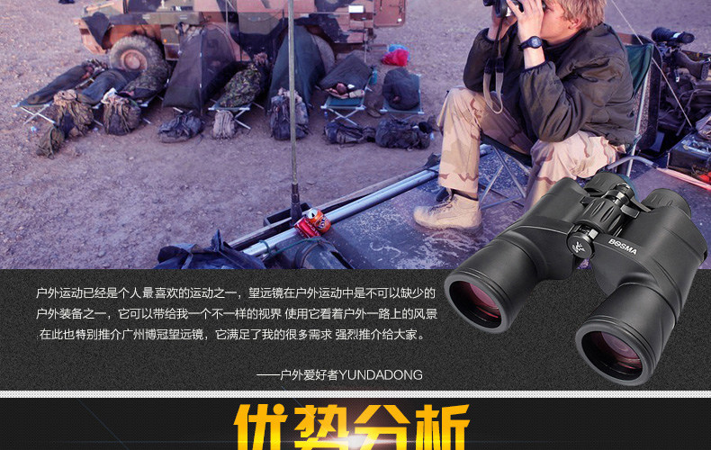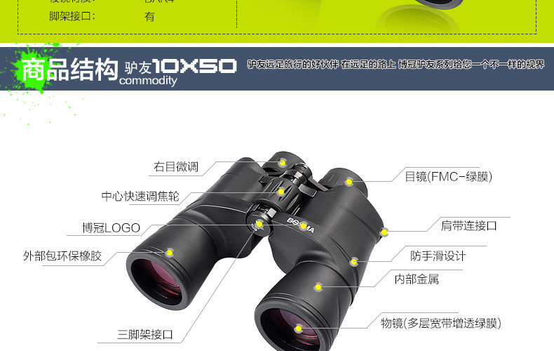 博冠BOSMA驴友10X50双筒望远镜高倍高清望眼镜广角设计