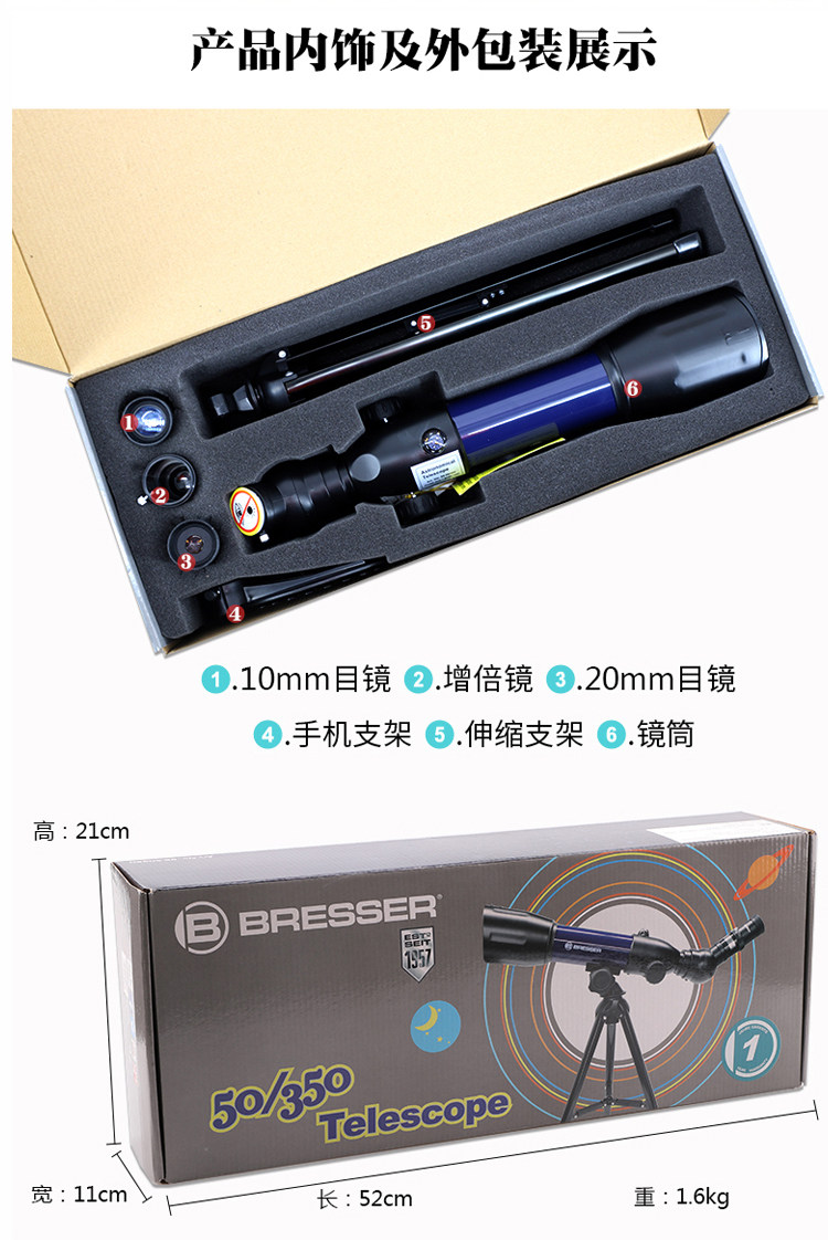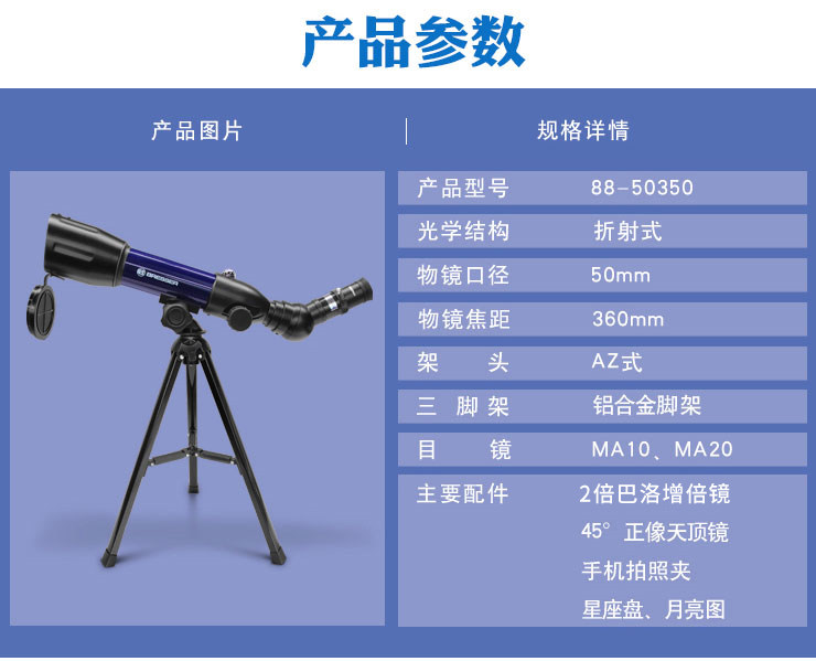 德国宝视德(Bresser)天文望远镜高倍高清夜视70AZ专业学生非1000