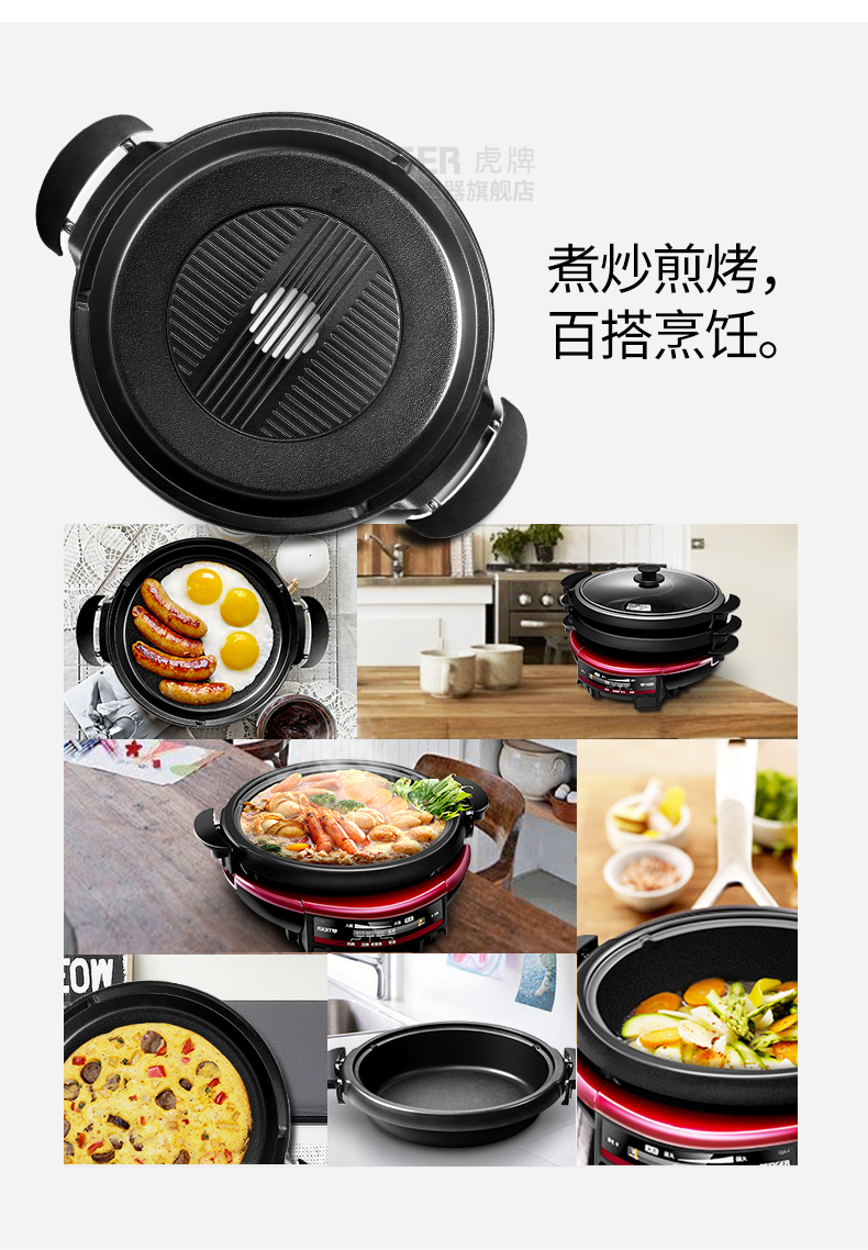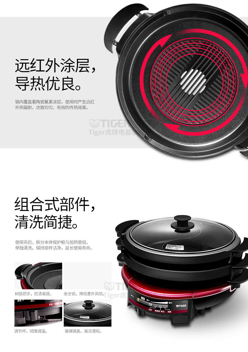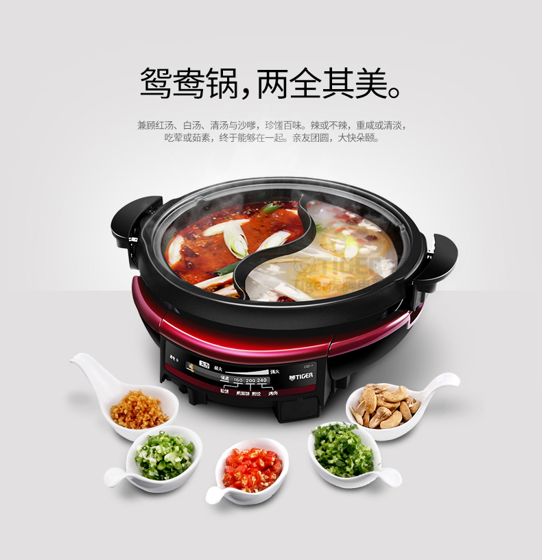 TIGER/虎牌电火锅多功能料理锅鸳鸯锅烧烤 CQD-F12C