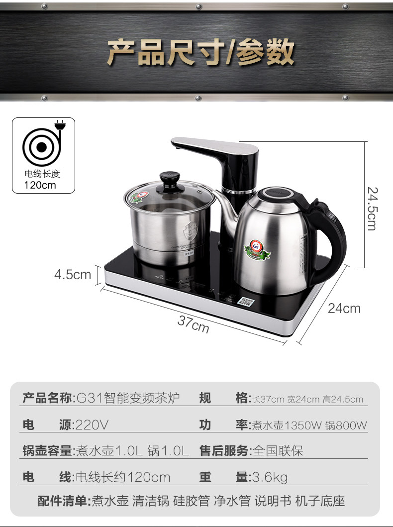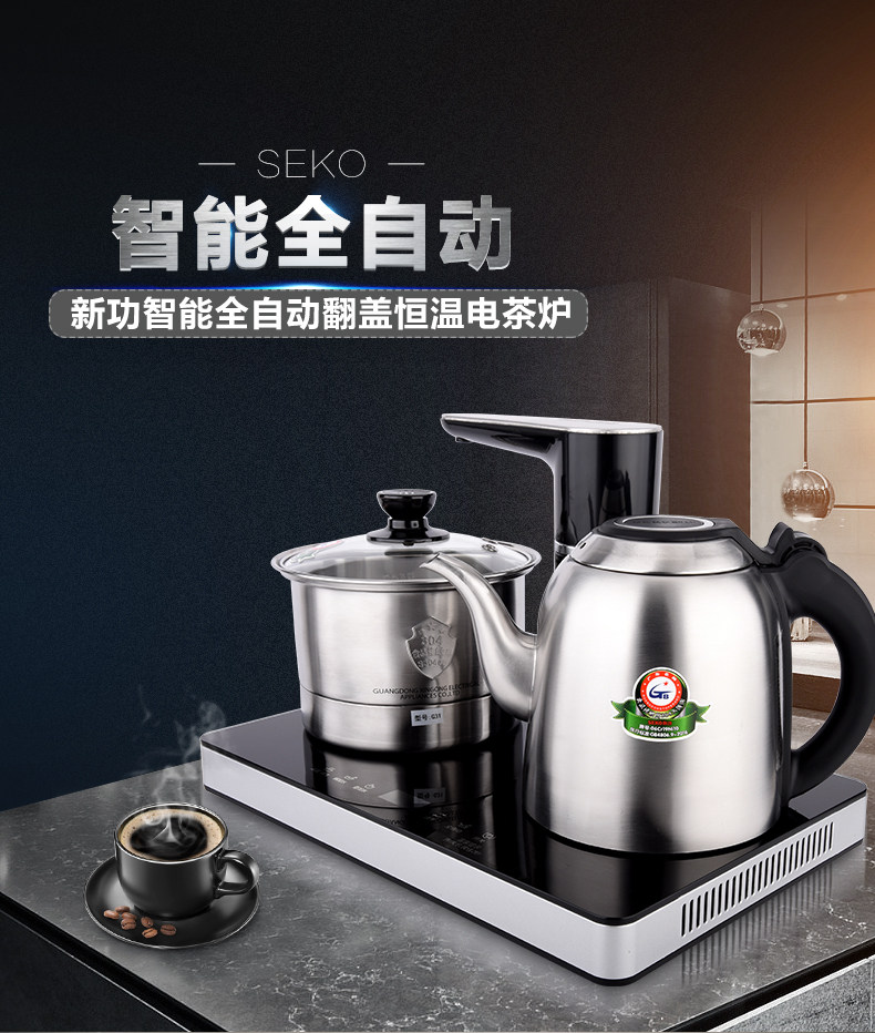 Seko/新功 F90全自动上水壶家用煮茶器电热水壶套装茶具304烧水壶