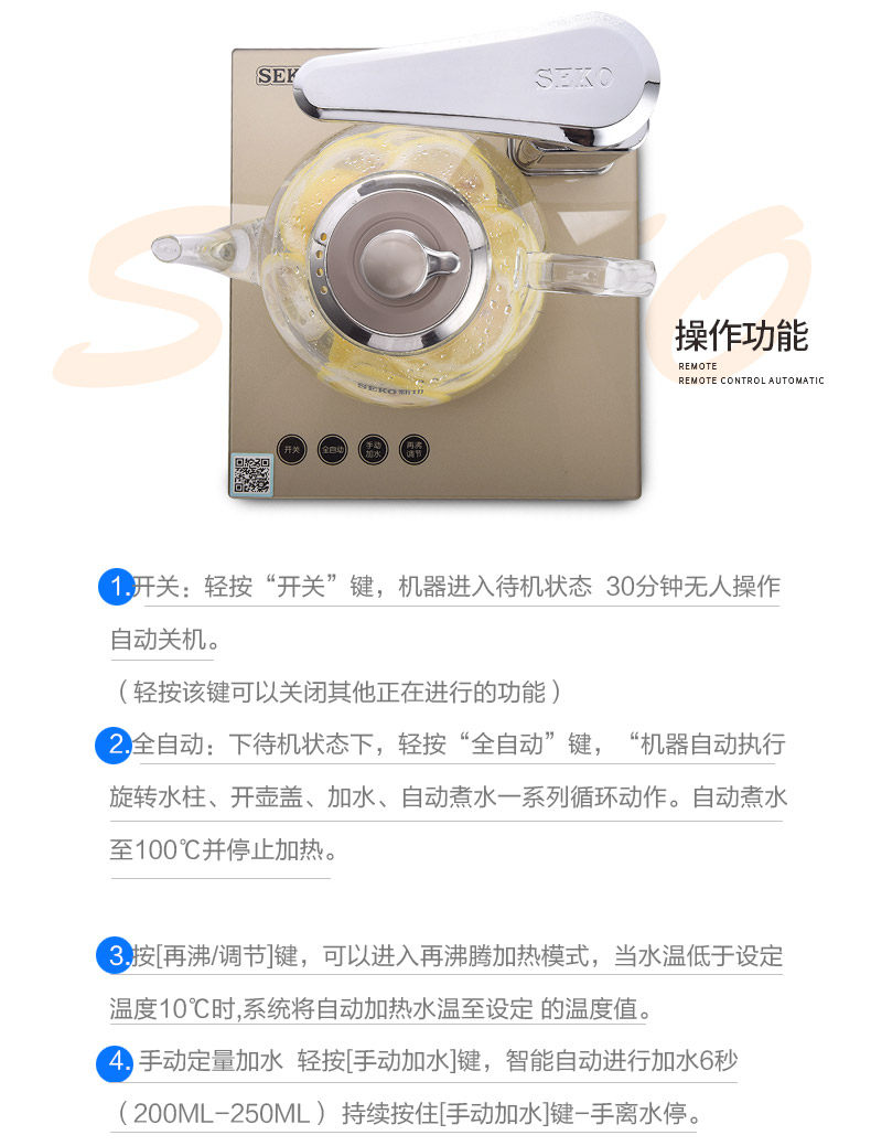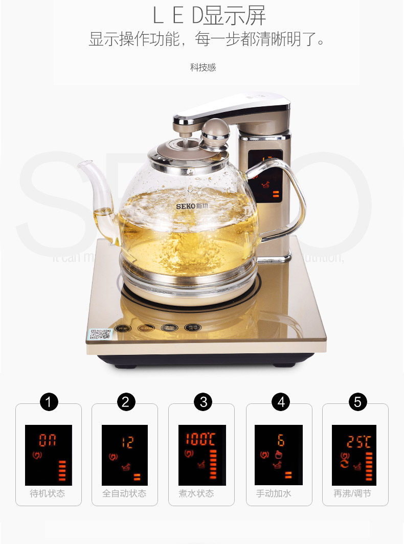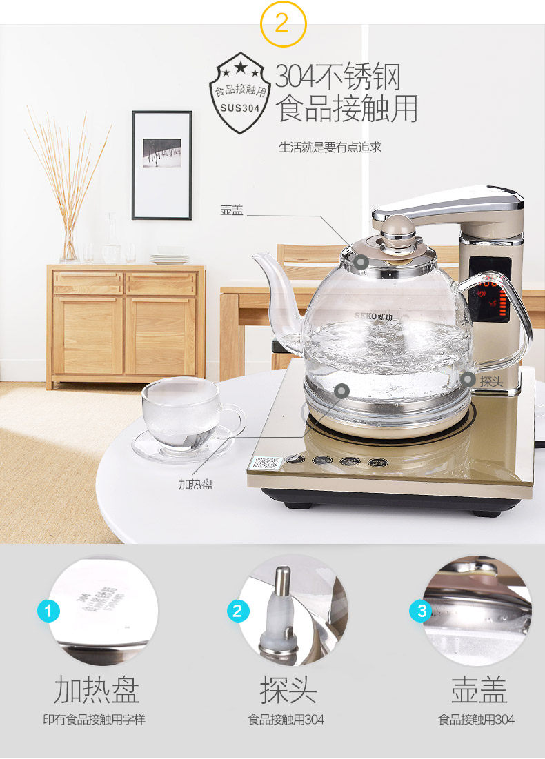 Seko/新功 F8自动上水电热水壶自动断电烧水壶抽水加水电茶壶茶具
