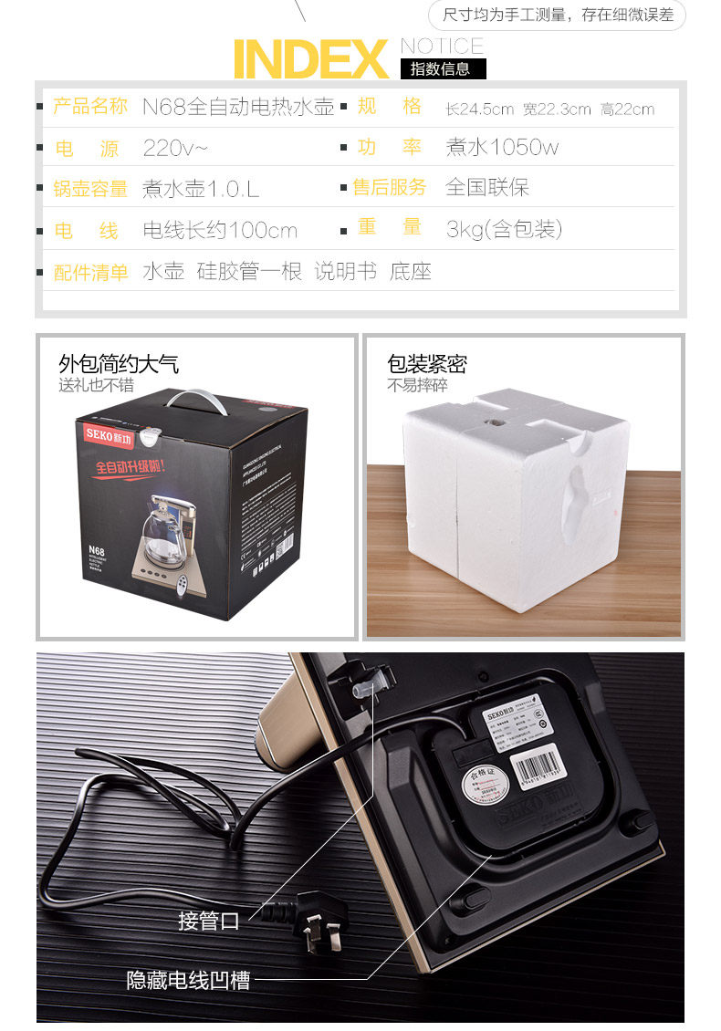 Seko/新功 N62 全自动断电上水电热水壶泡茶炉茶具套装电烧水茶壶