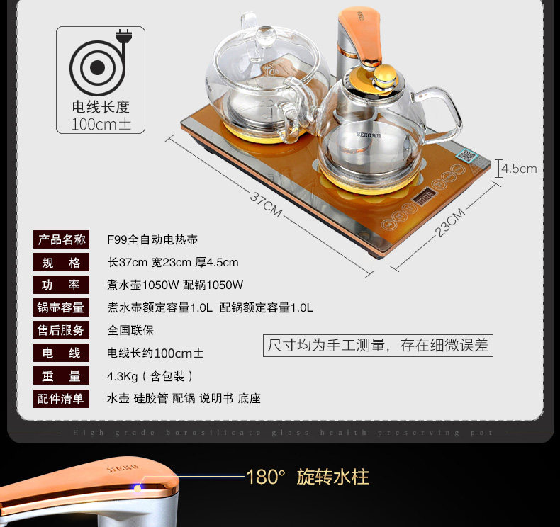 Seko/新功 F8自动上水电热水壶自动断电烧水壶抽水加水电茶壶茶具