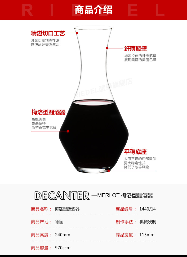 奥地利RIEDEL 梅洛醒酒器红酒杯高脚杯套装无铅水晶德国进口