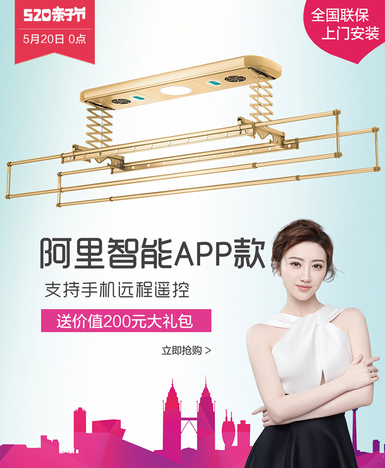 晾霸电动晾衣架 自动遥控升降智能晾衣机 晾衣杆电动凉衣架 M01