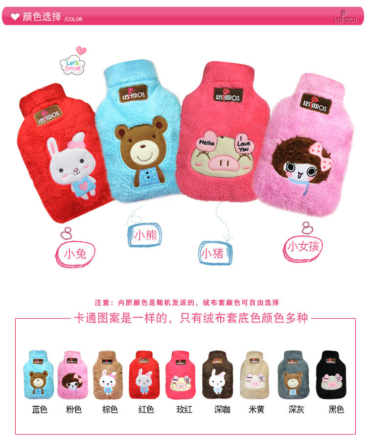 乐雪儿热水袋防爆充电暖宝宝卡通毛绒萌萌可爱注水暖腰暖手宝