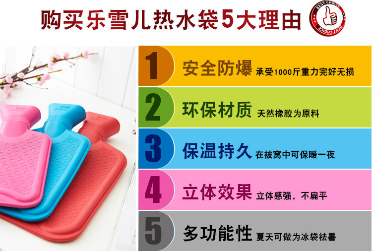乐雪儿橡胶热水袋充水加厚环保暖手宝冲注水大号暖水袋暖手袋暖宝