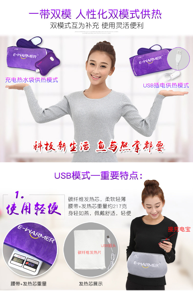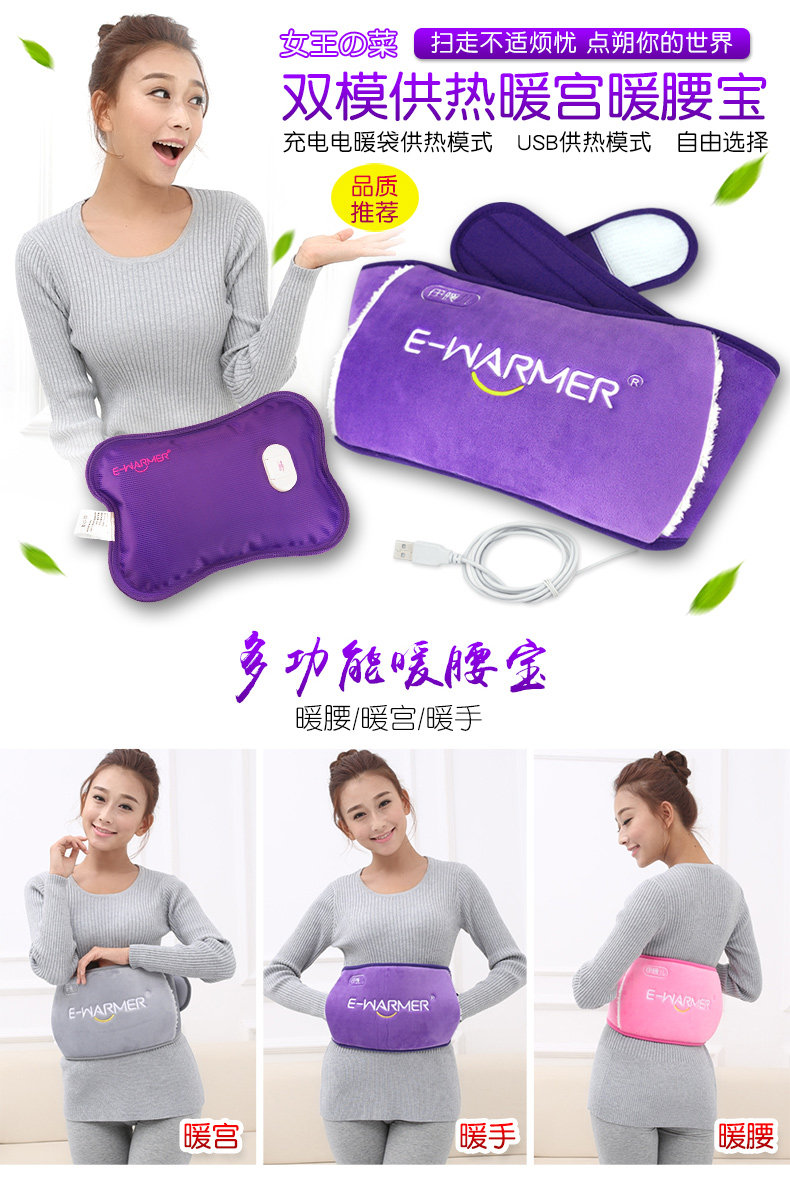 伊暖儿双用热水袋充电暖腰宝 电热宝防爆电暖水袋USB暖宫宝腰带