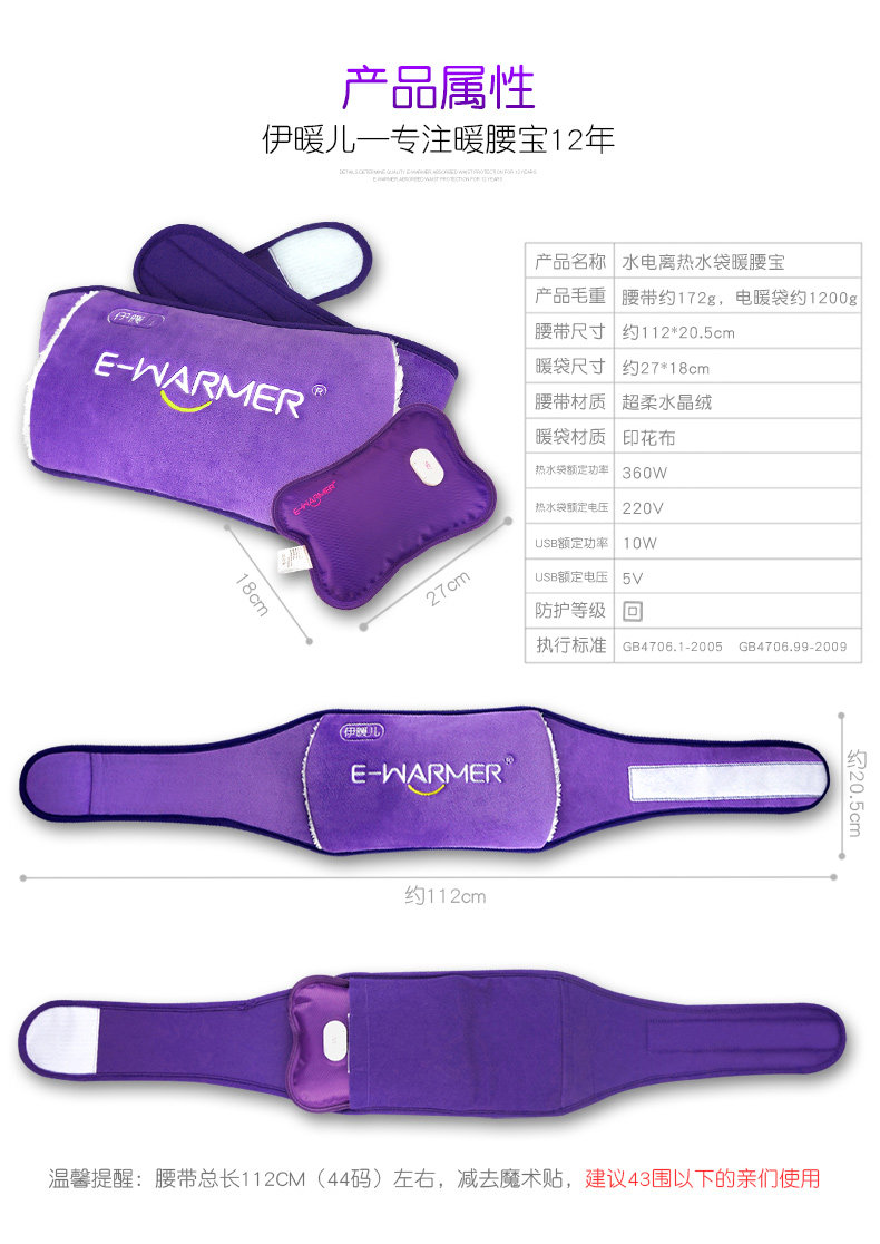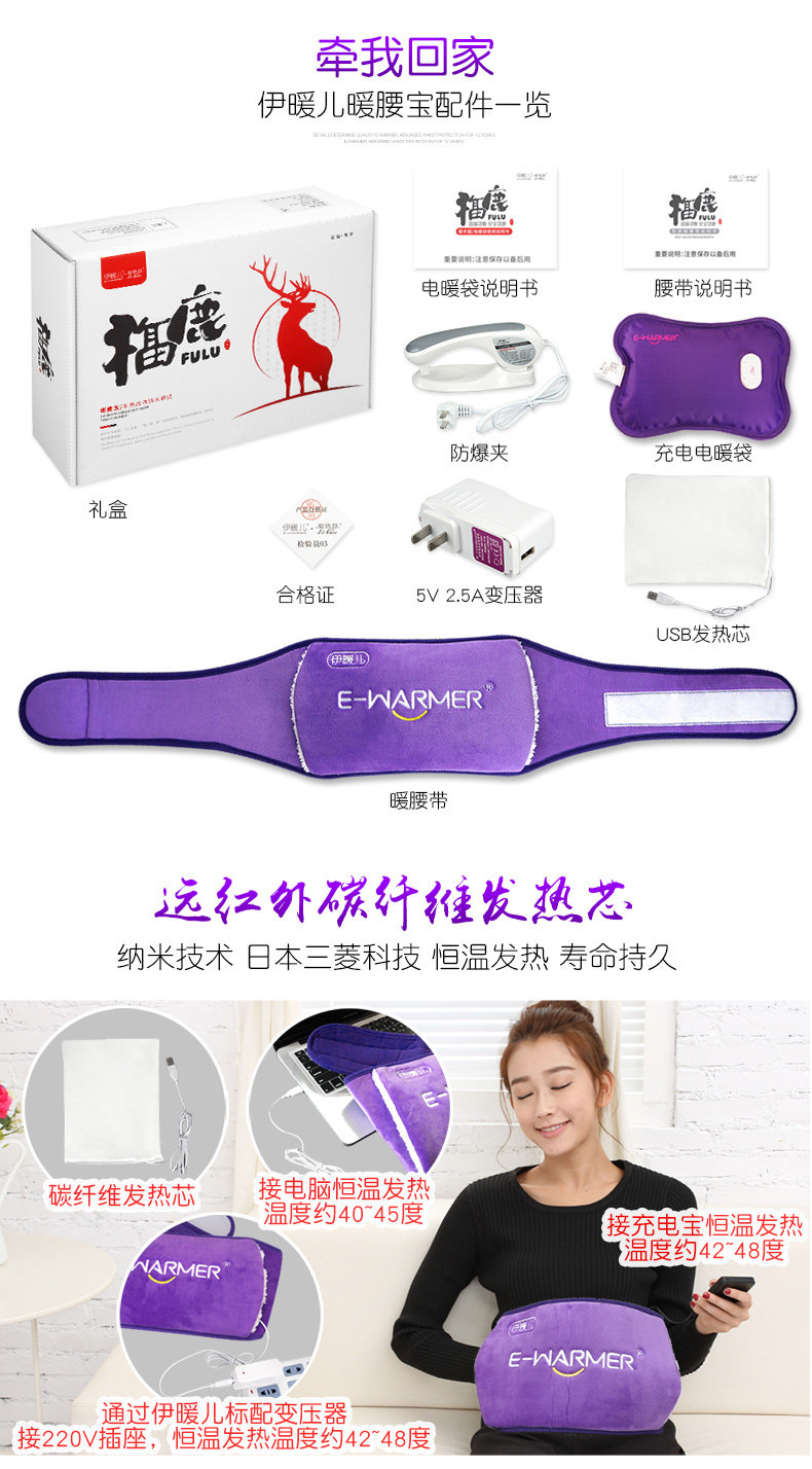 以下是伊暖儿双用热水袋充电暖腰宝 电热宝防爆电暖水袋USB暖宫宝腰带的详细说明,厂家介绍,求购联系信息,最终解释权归深圳市海耀科技有限公司所有