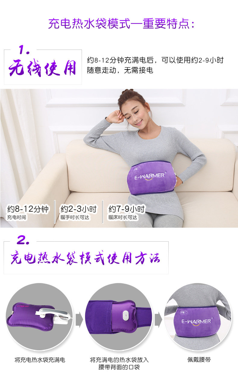 伊暖儿新热水袋充电暖腰宝空调房防爆暖水袋电热暖宫腰带暖宫宝
