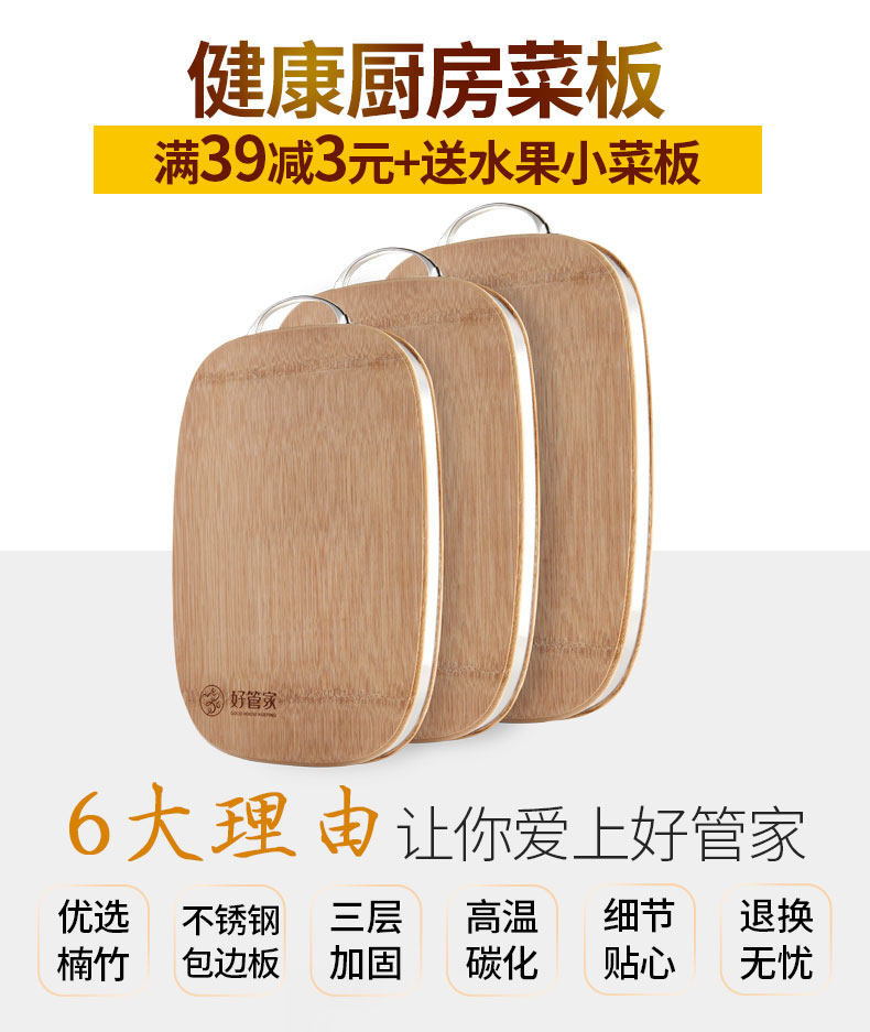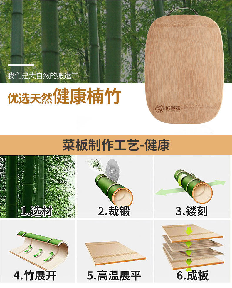 好管家菜板竹木砧板切菜板厨房家用长方形砧板楠竹案板大号擀面板