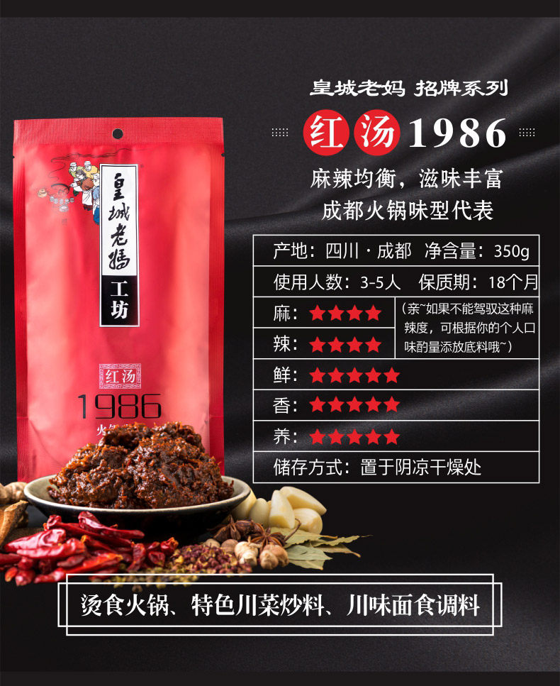 皇城老妈火锅底料重庆成都清油四川特产手工炒制冒菜麻辣烫350g