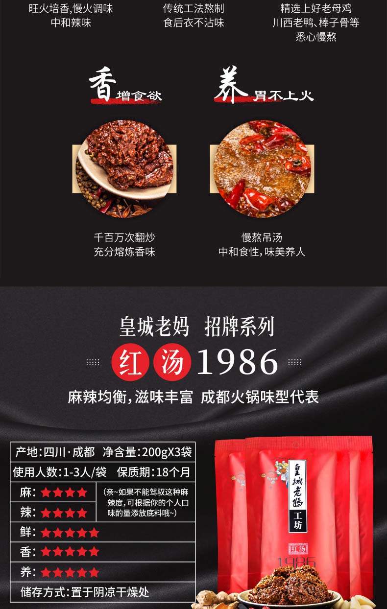 皇城老妈成都火锅底料四川正宗特产重庆麻辣烫串串香底料200g*3