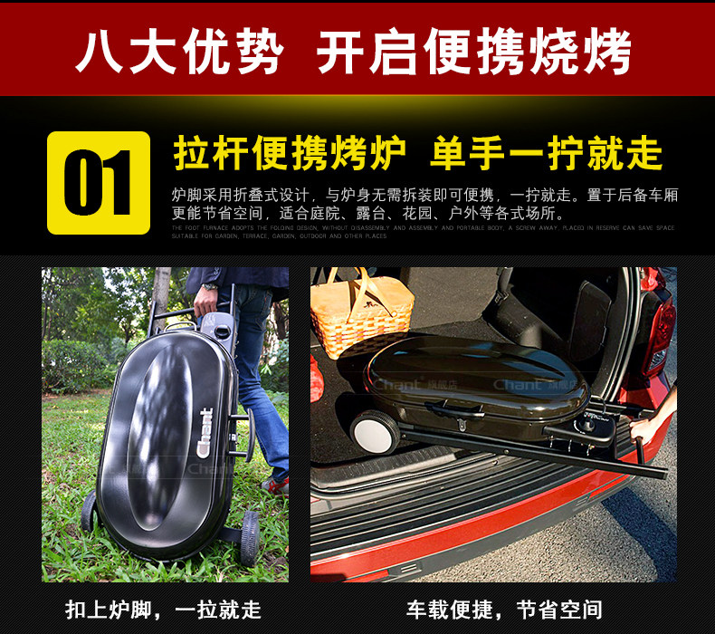 Chant 家用烧烤炉户外烧烤架 大号木炭便携全套烧烤 燃气烧烤炉